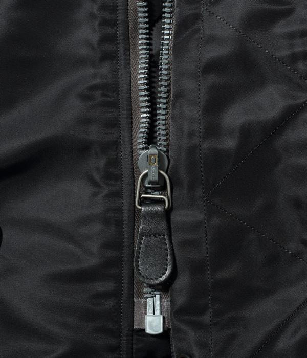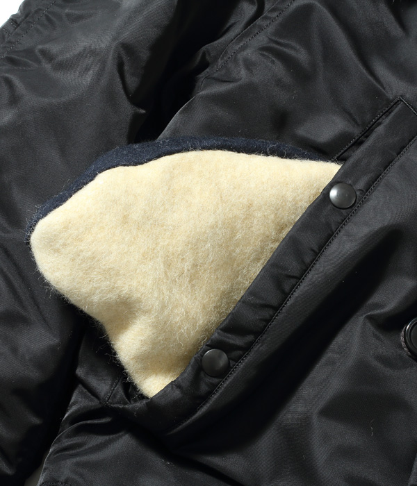 ヘビーゾーン用のN-3Bを細身にしたモデル。素材によって使用されている染まり方が異なっており、多くの異素材が投入されたジャケットであることがより際立っている。
