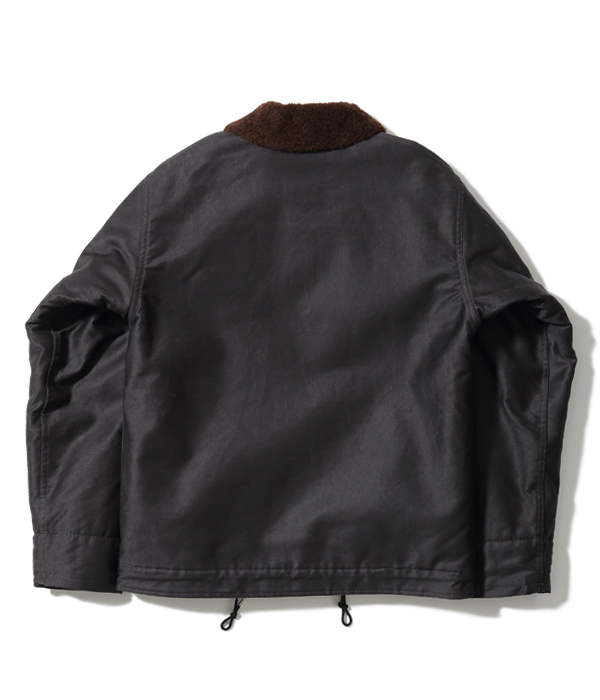 The black color of the jungle cloth jacket has been faded to grayish color by exposure of strong sunlight, wind and rain on deck. The jungle cloth for this N-1 jacket is colored to the imaginary color resulted from wearing over years.
