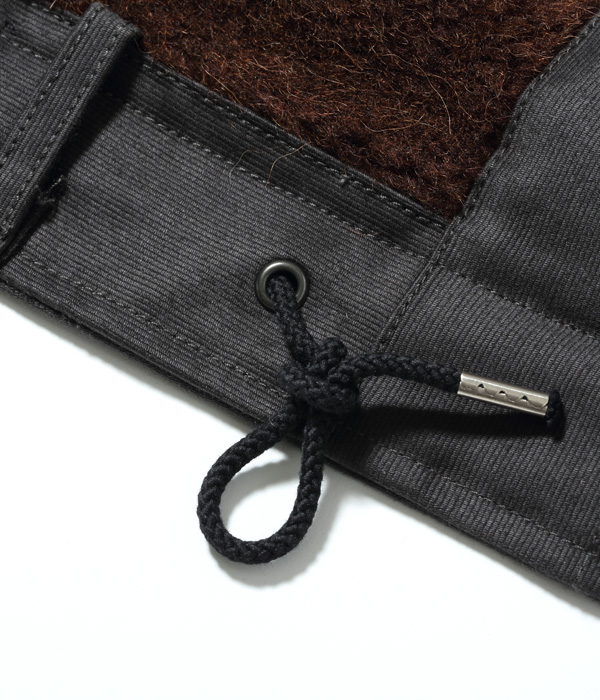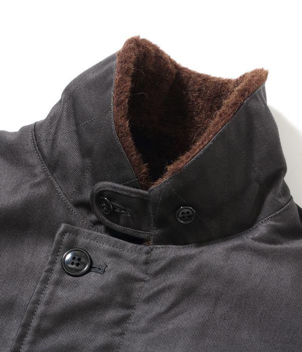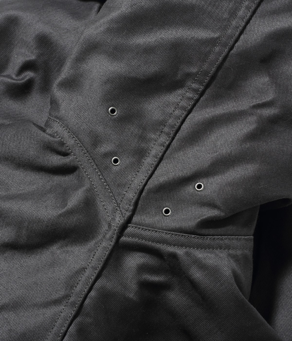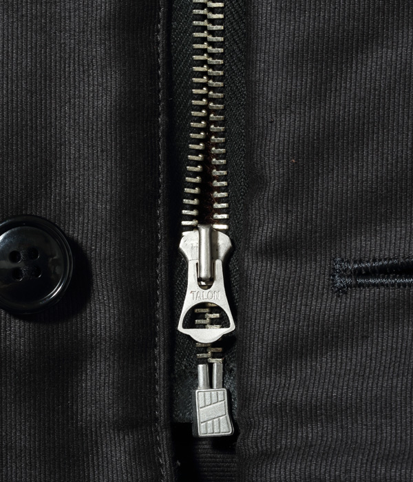 デッキクルー達が着倒したネイビーのジャングルクロスは直射日光や雨風に晒され、絶妙な色に褪色していった。このジャングルクロスは黒がチャコールグレーに褪色した色で表現している。