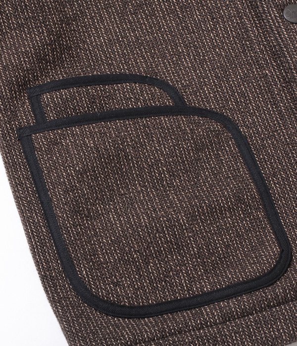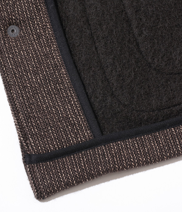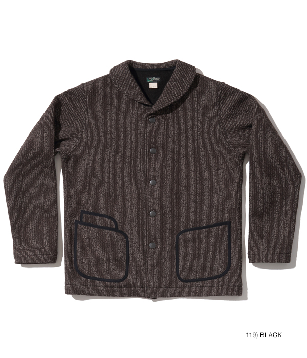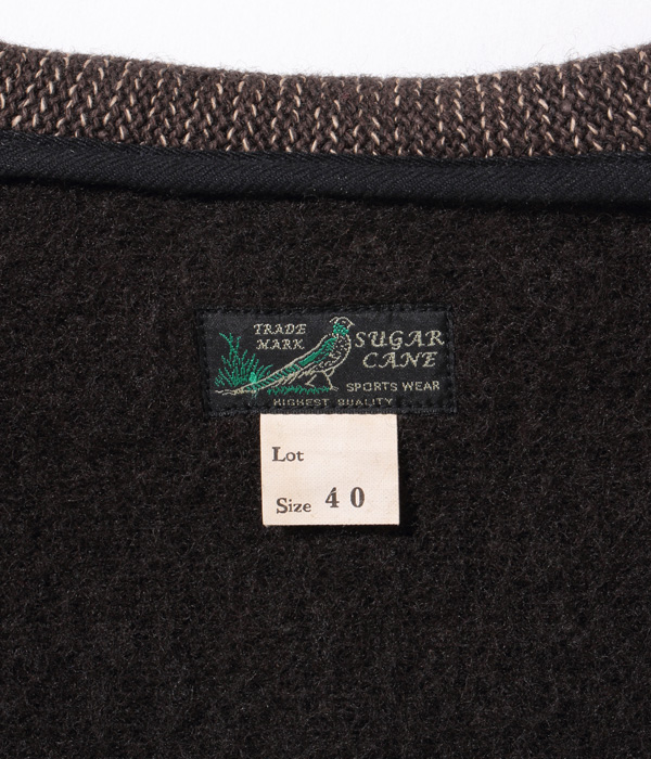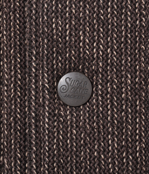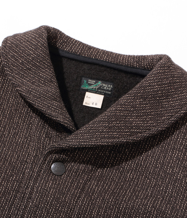 通称「ビーチクロス」と呼ばれるウール61%、コットン39%のラッセル編み生地で仕立てられたジャケット。これまでシュガーケーンではビーチクロスで様々なタイプのジャケットを手がけてきたが、ショールカラーのタイプは初のリリースとなる。
