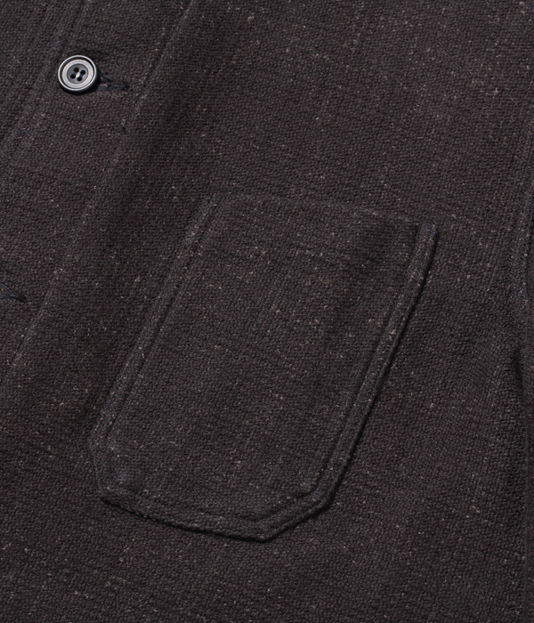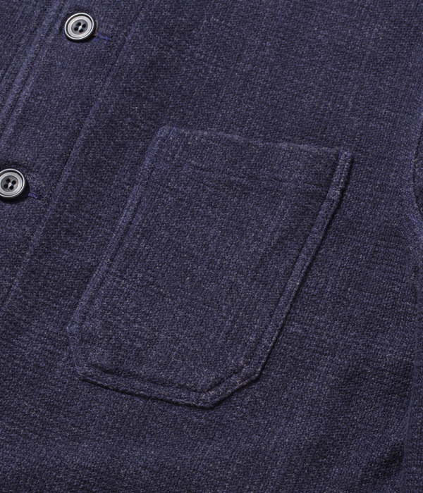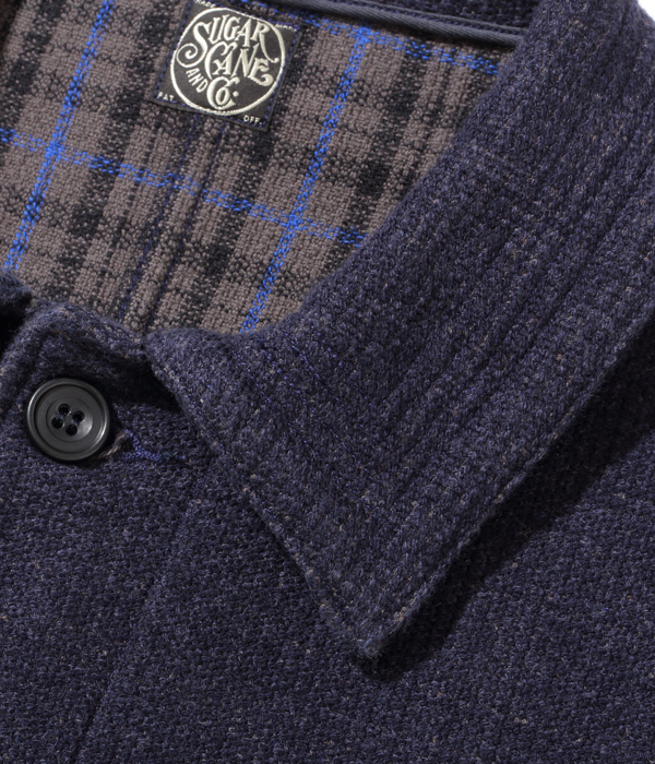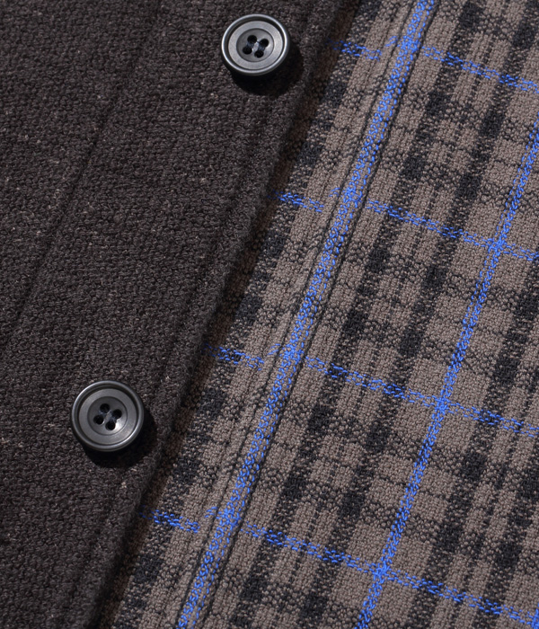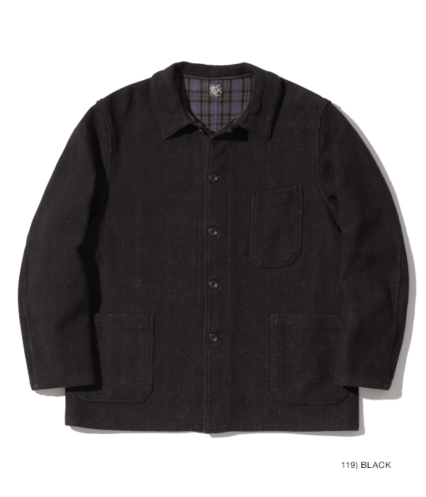 フランスの PASCAL 社が1950年代頃に手掛けたウール製ダブルフェイス生地のヴィンテージをコットンに置き換えて再現。今年はブラックに加えネイビーも展開する。型は昨年のジャケットよりも大きめのコートタイプで、シガレットポケットも丈を伸ばしてスマートフォン用に変更。裏側のチェックの方が表側より目立つため優先して柄合わせがされており、表側すら柄合わせをしないこともあるアメリカンワークウェアとは異なるヨーロッパヴィンテージならではの特徴。