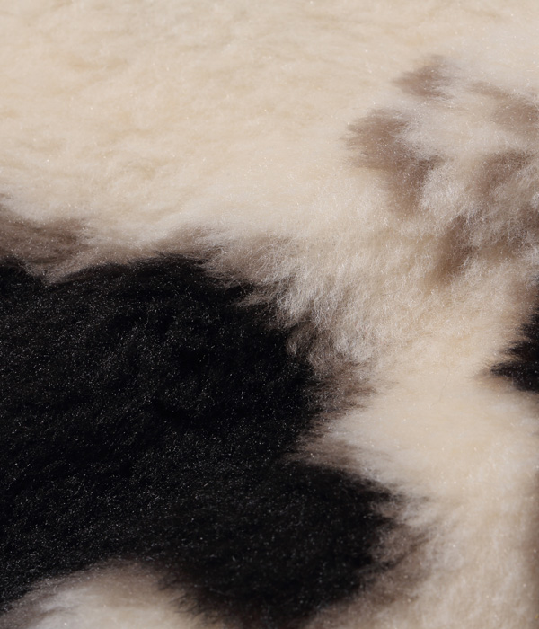 1950年代後期から1960年代前期にかけて存在した、通称「コディアック」タイプのプルオーバージャケット。ヴィンテージではアニマル柄の評価が高く、中でも人気のホルスタイン柄を再現。生地の毛足を長めにアレンジすることで、より秋冬向けに仕上げている。襟元のレースアップには牛革紐を使用。