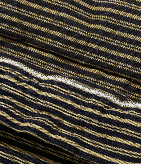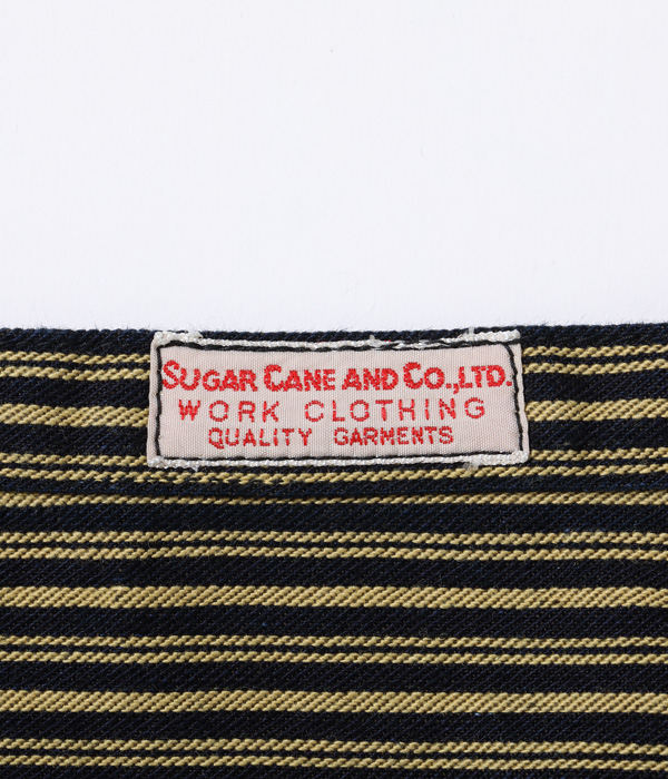生地は経糸にロープ染色のインディゴと硫化染料のブラウン、緯糸にチャコールグレーを使用し織り上げたシュガーケーンオリジナルの11oz. BROWN LIBERTY STRIPE生地を採用。同じ型で10oz. HERRINGBONE TWILL、11oz. BLUE DENIM、9oz. WABASH STRIPEを使用したモデルも展開する。