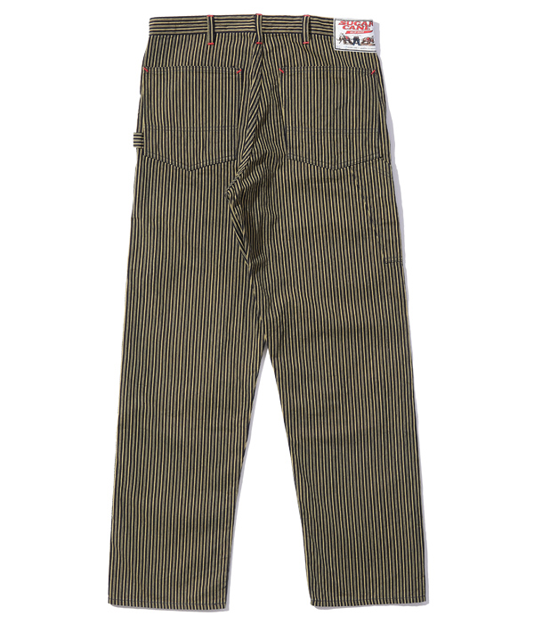戦前から数多のブランドのワークウェアの生産を請け負ってきたストアブランドが戦後に手掛けた製品をもとに、その特徴的なディテールを再現したワークパンツ。シルエットはシュガーケーンのワークパンツでは目新しいテーパードライン。ウエスト32インチに対してウエスト28インチ用の裾幅に絞っているため、大きめのウエストサイズをベルトで絞って着用しても、かかとで裾を踏むことがないように仕上げた。黒ステッチの巻き縫い部分やカンヌキの下糸には生成糸を使用している。