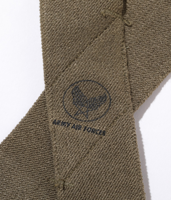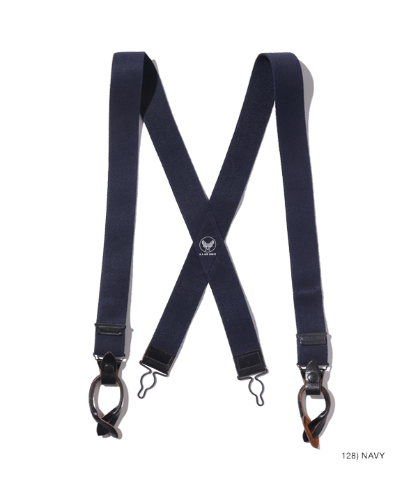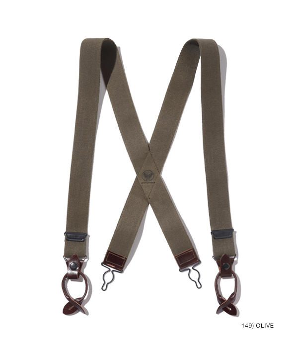 B-15ジャケットのトラウザースとして採用されたのがA-11トラウザースである。B-15シリーズの進化と同じくコットンからナイロンへと変わり、ジャケット同様に色みも変更されて行った。そのA-11トラウザースを支えたのが、スペックNo.6790のサスペンダーである。バンドの幅が1.5インチ(3.8cm)で強いテンションのゴムが織り込まれたサスペンダーは、スライドバックルにより長さの調節が可能。フロント先端の革パーツにはドットボタンが打たれたクイックリリース機構で、緊急時にドットボタンを外してサスペンダーからリリースさせる。このサスペンダーはトラウザースのアクセサリーであり脇役だが、バンドが交差した前後に入ったインシグニアが空軍の誇りを感じさせてくれる。