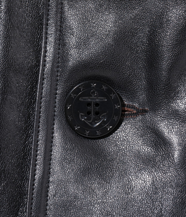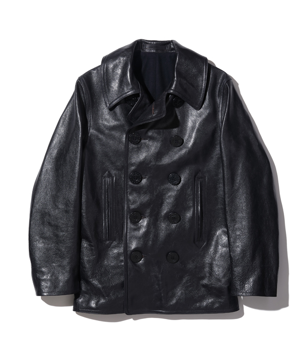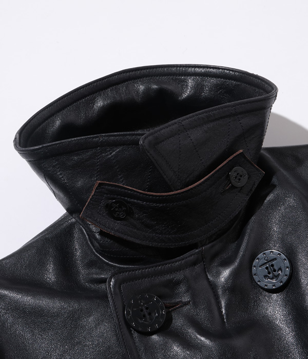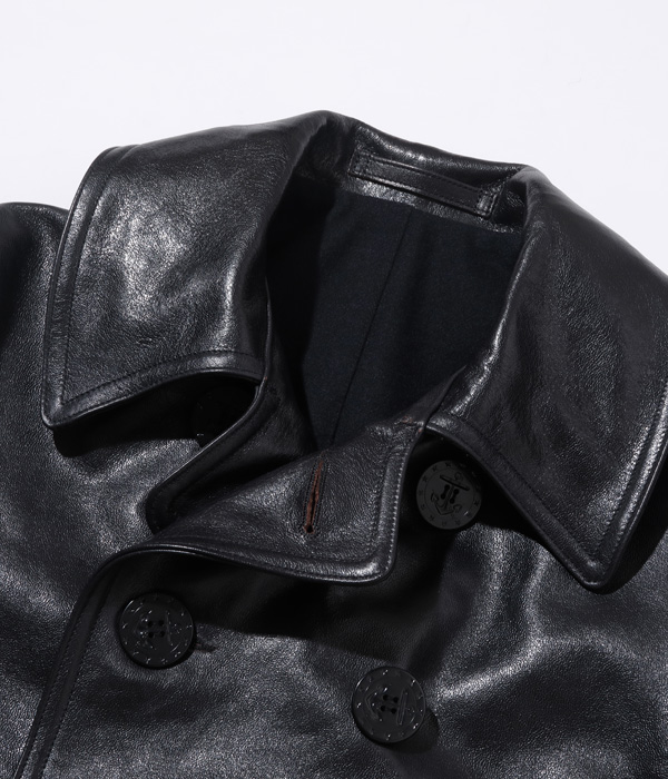 Lot No. BR80620 / WILLIAM GIBSON COLLECTION Type BLACK LEATHER PEA COAT