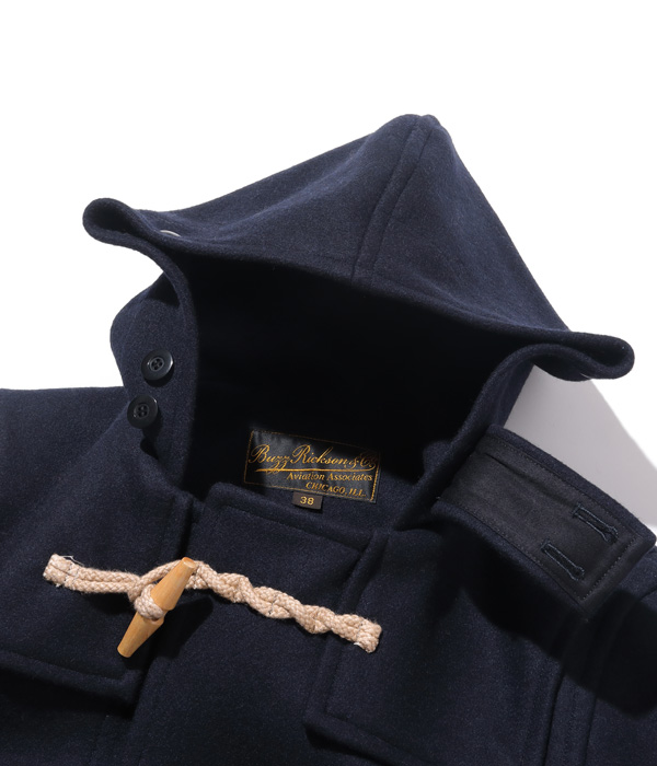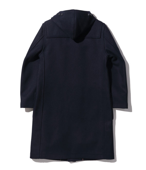 ダッフルの名前は、ベルギーのアントウェルぺン州の町、デュフェル(Duffel)に由来し、これを英語で発音するとダッフルになる。この町の特産品であるファスチアン織りという綾織りの丈夫なウール生地をヨーロッパ各地に輸出していた。強く縮絨をかけてあるため水にも染みにくく、クッション性にも優れた生地は爆薬箱の内張に使われるほどであった。本来は北欧の漁民が作業着として着用していたダッフルコートは、手袋をしたままでも開閉できる様にトグルとロープで閉じるというのが基本となっている。トグルは漁に使う『浮き』を流用したものと言われており、木製なのはそれが理由となっている。もう一つの特徴であるフードは寒さから着用者を保護する目的で、頭から被ることで体温が低下するのを防いでくれた。ダッフルコートがイギリス海軍で採用されるようになったのは第二次大戦からであるが、採用までの背景は判然としていない。最初期型の特徴はフロントのトグルが3本となっており、フードには調節可能のスナップボタンが付いている。また、内側の裾に付いたストラップは海風に晒される船上で裾がばたつかない様、足を通して着用するためのディテールであった。シンプルでありながら防寒性の高い英国軍のダッフルコートは、その後世界中の国々で広く愛用されるようになった。