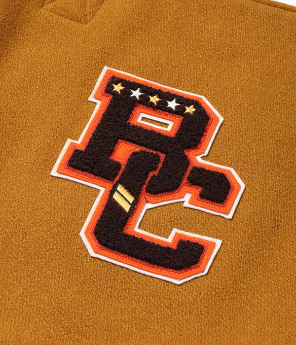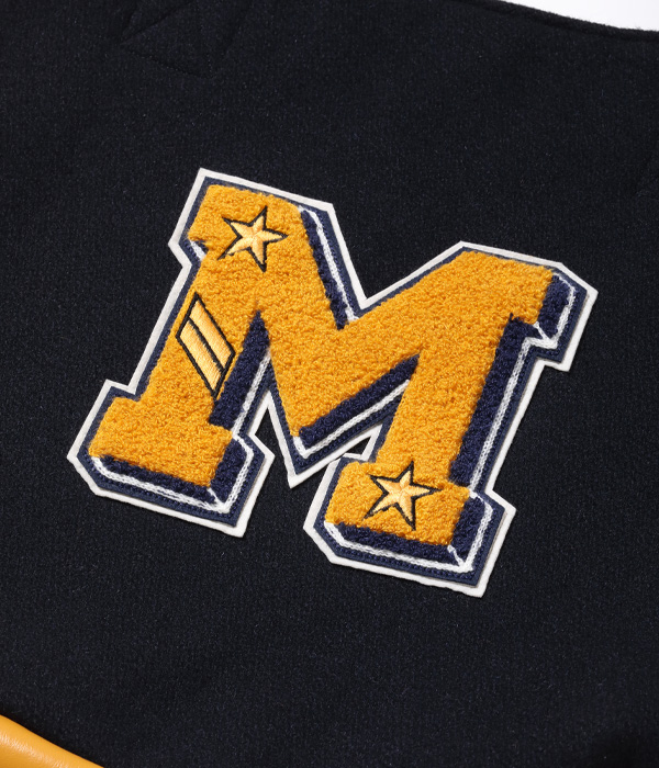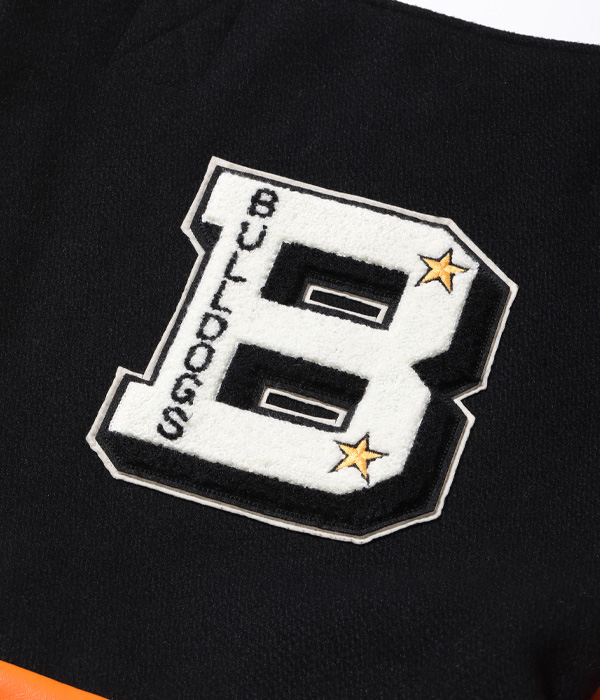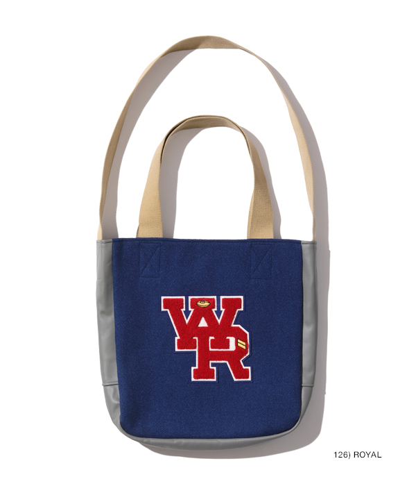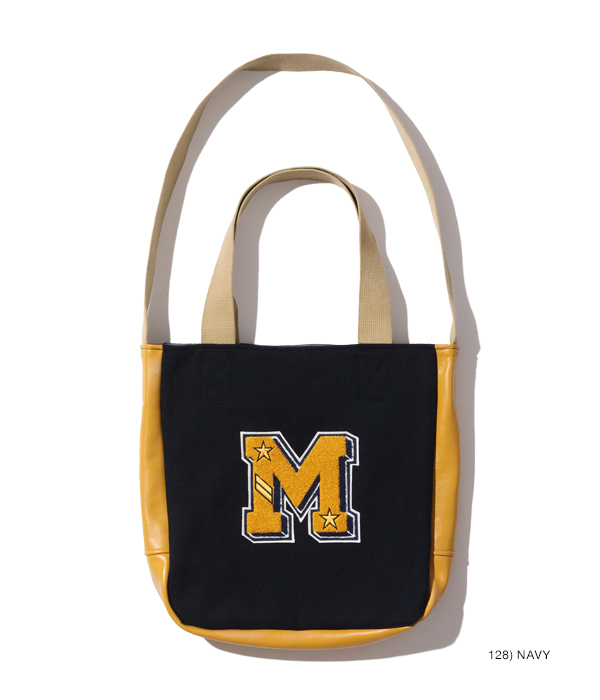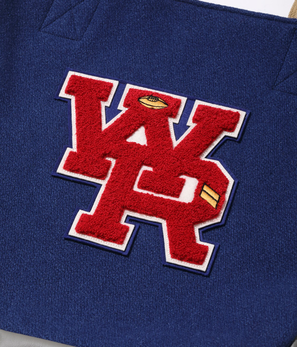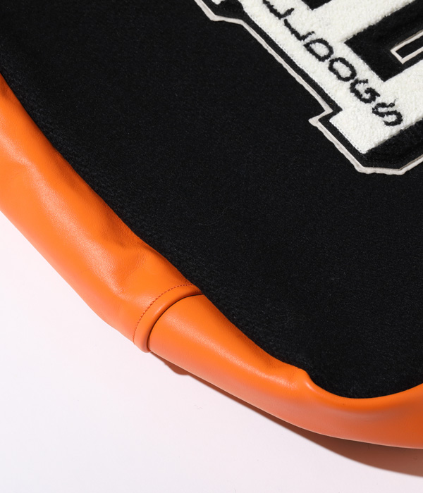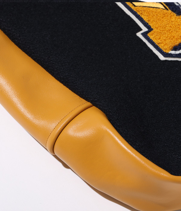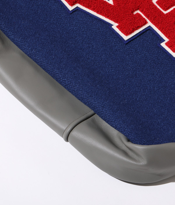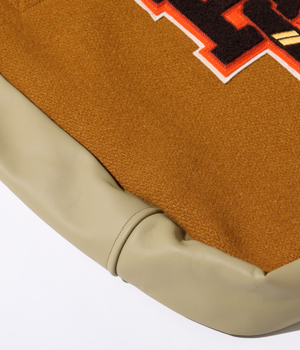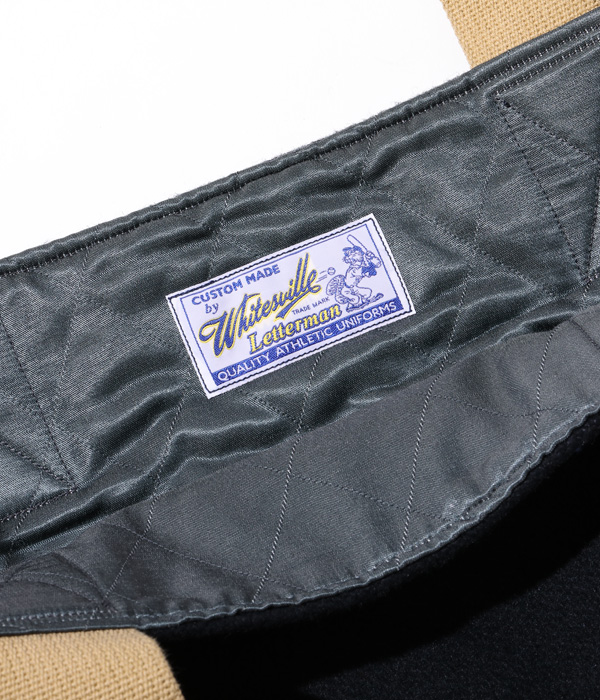 30oz.のウールメルトン、米国産のステアハイド、レーヨンコットンのキルティングなどアワードジャケットを構成する素材を用いて作られたアワードバッグ。肩掛け用のショルダーベルトと手持ち用のハンドルが備え付けられ、デコレーションとして側面にシニールが縫い付けられる。アワードジャケットを彷彿させるホワイツビルらしいバッグに仕上がった。