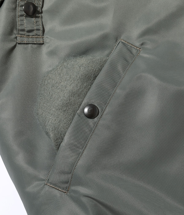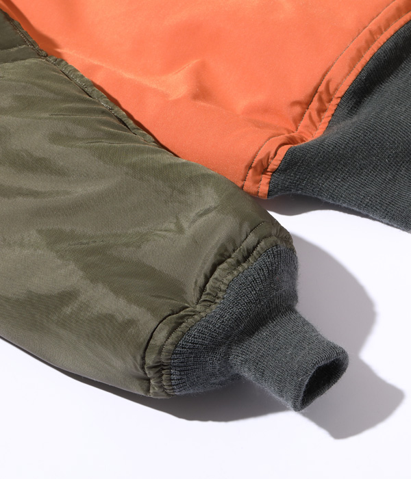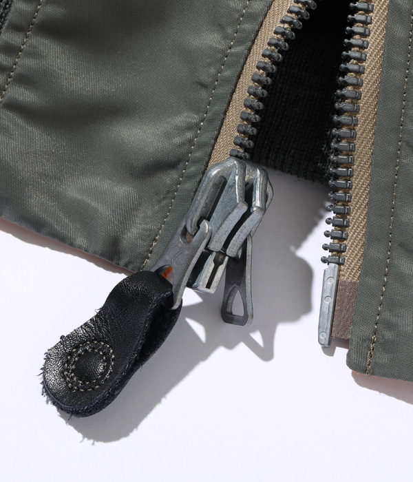 M-51パーカーは第二次大戦時に米陸軍が採用したフィールドパーカーを進化させたもので、現在の民間衣料品にもデザインが多く使用され、その影響力は計り知れないほど多大である。その採用は朝鮮戦争が勃発して間もない1951年で、極寒の朝鮮半島ではユニフォームの上から重ね着するレイヤーシステムが採用されると同時に脱着可能なライナーも付属した。同時期の1950年代前半、米空軍が開発したのがフライトジャケットの傑作がMA-1である。B-15シリーズで試行錯誤を繰り返して登場したMA-1は機能美溢れるディテールと動きやすいフォルムが非常に魅力的である。1993年に産声を上げたバズリクソンズは2023年でブランド生誕30周年を迎える。この節目を機に2型のマスターピースをレイヤーシステムに挑んだ意欲作であり、バズリクソンズが30年という長い道のりで経験した英知と技術がふんだんに搭載された一着でもある。厳格なミルスペックに基づいた本格素材や一級のパーツ群を使用しているのは言うまでも無く、要所にバズリクソンズの斬新な知恵と工夫が見え隠れするオリジナルのジャケットがここに完成する。ジャケットにはメモリアルアイテムに相応しく、我々の誇り高きトレードマークが堂々と転写されている。