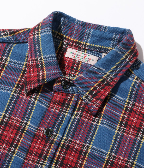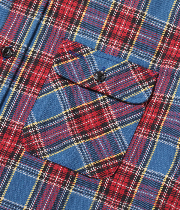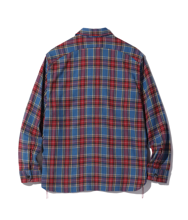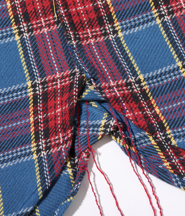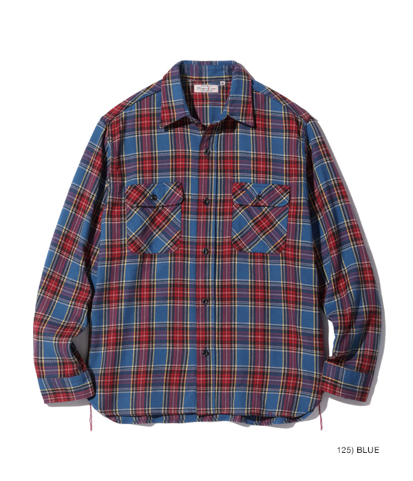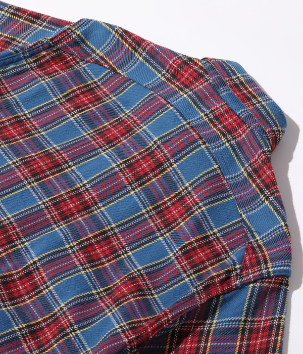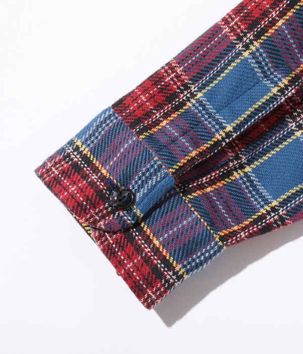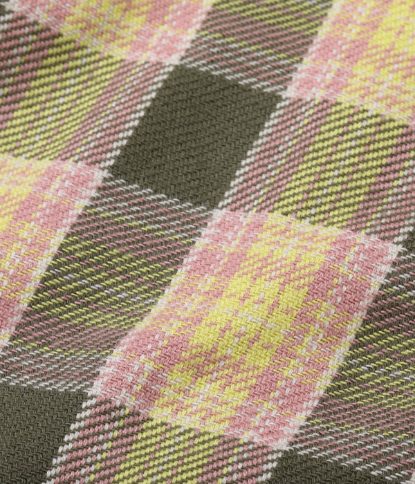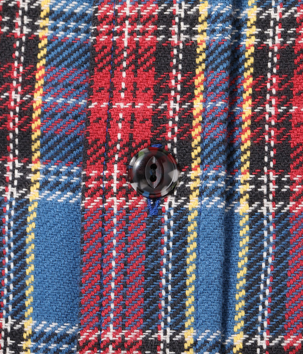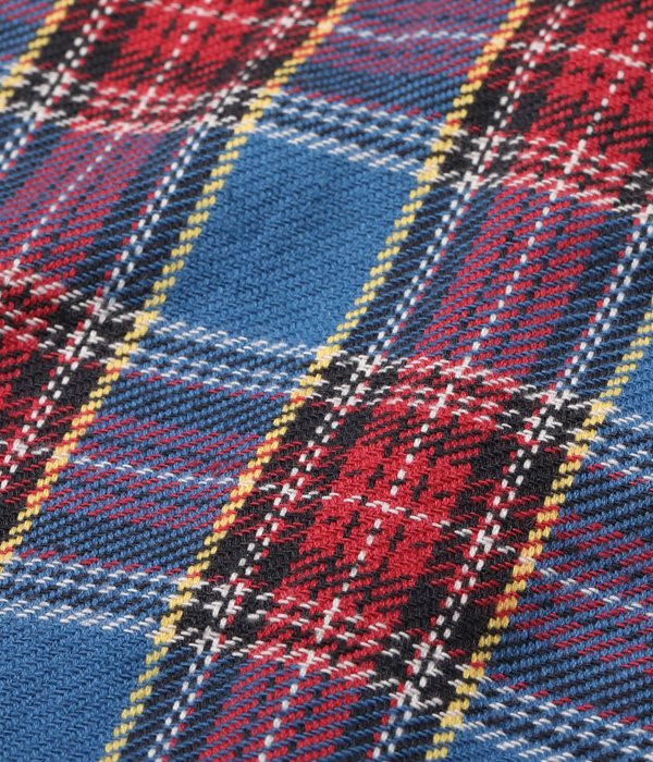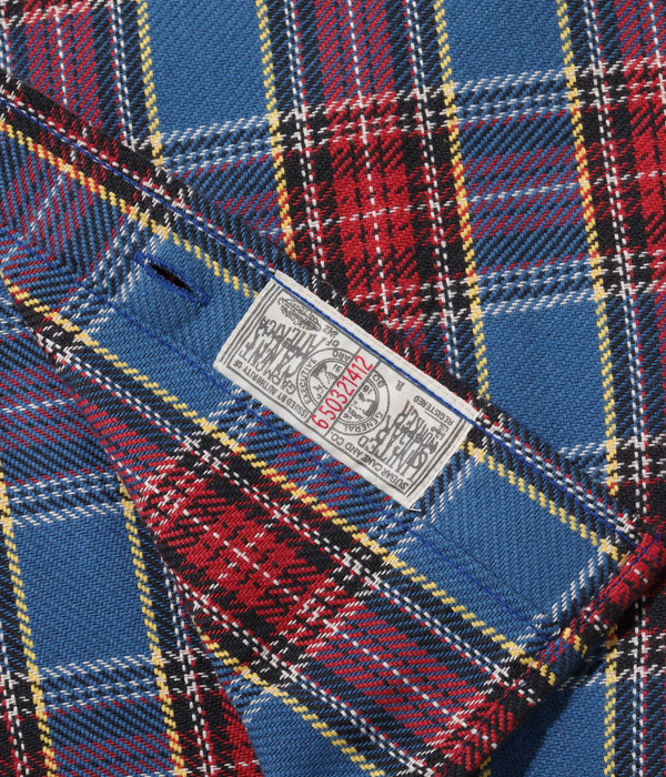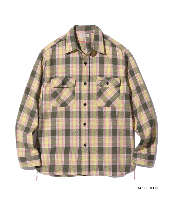 1930~40年代のウールジャケットのライニングに使用されていたチェック生地をベースにコットン100%にアレンジしてリリース。経糸5色×緯糸4色のクラシカルなチェックは糸をやや太番手にしてワークシャツ用に仕上げている。生産の効率化のため時代の流れとともに省略されてしまったカーブした背ヨークや、補強の脇の力布が特徴。