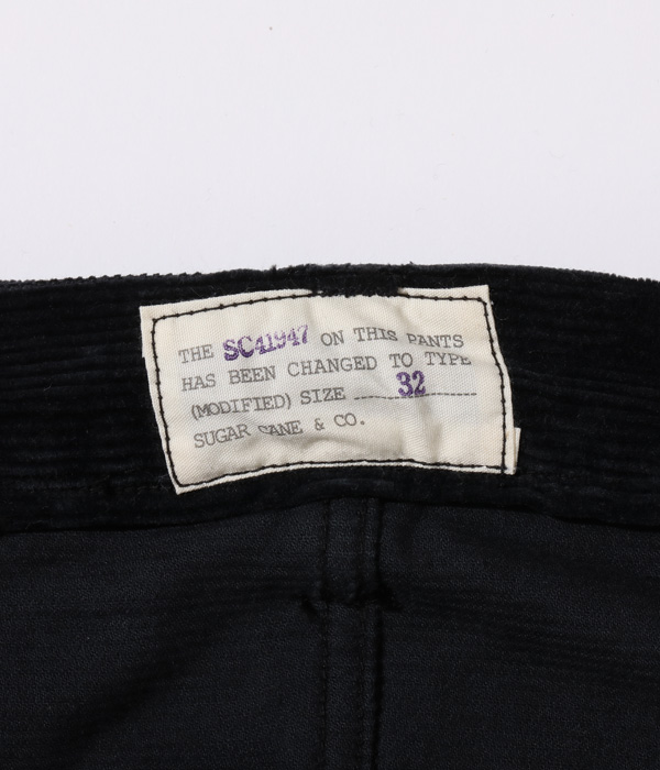 シュガーケーンを象徴するジーンズのひとつ1947モデル「SC41947」をコーデュロイ素材にアレンジ。昨年のモデルではボタンフライであったが、今回はジッパーフライでリリースしている。ボタンやリベット等のパーツ、隠しリベット等のディテール、ヴィンテージならではのシルエットはそのままに、レングスを31インチに統一。モディファイドラベルはウエストの内側に縫い付けられる。