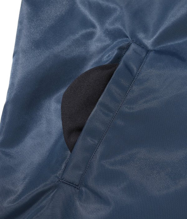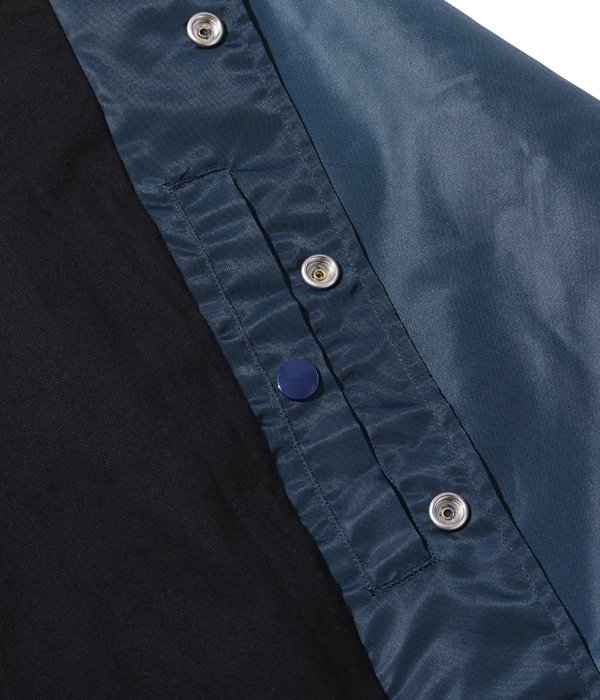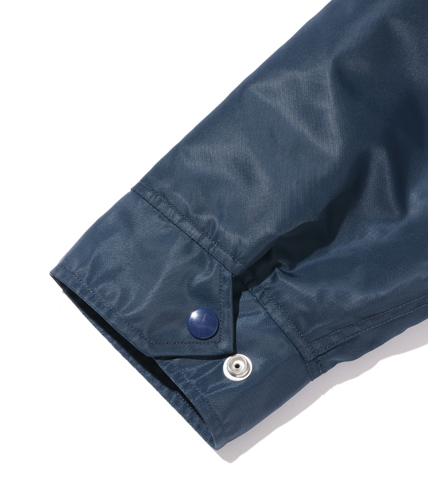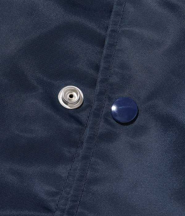 ライトなナイロン素材を使用したコーチジャケット。シンプルに無地のままコーディネートを楽しむも良し、所有するシニールや手刺繍で好みのカスタムを施すのにも最適な一着。ライニングにはコットンツイルを起毛した生地を用いているため着心地が良く、内ポケットも装備。軽やかな素材感のため、春先にも活躍するジャケットに仕上がった。