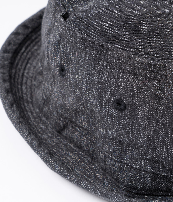 「PORKPIE HAT」とは、その名の通りクラウンの部分が「ポークパイ」のような円筒形でブリムがカールアップしたハット。シュガーケーンのワークウェアと相性の良い9オンスのブラックコバート生地で仕立てている。