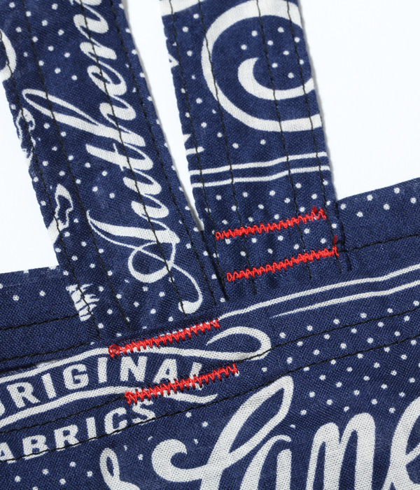 日本では2020年7月1日より、海洋プラスチックごみ問題の解決や地球温暖化の抑制などを目的として、プラスチック製買物袋(レジ袋)の有料化が開始された。その影響で注目されているのが再利用可能なショッピングバッグ、いわゆる「エコバッグ」である。現在、生地や形の異なる多種多様なエコバッグが発売されているが、ヴィンテージをベースとした古き良きアメリカンカジュアルスタイルにフィットするものはなかなか見つからない。そこで、シュガーケーンでは「ジーンズに合う買物袋」として、デニムと相性の良いバンダナでショッピングバッグを製作。