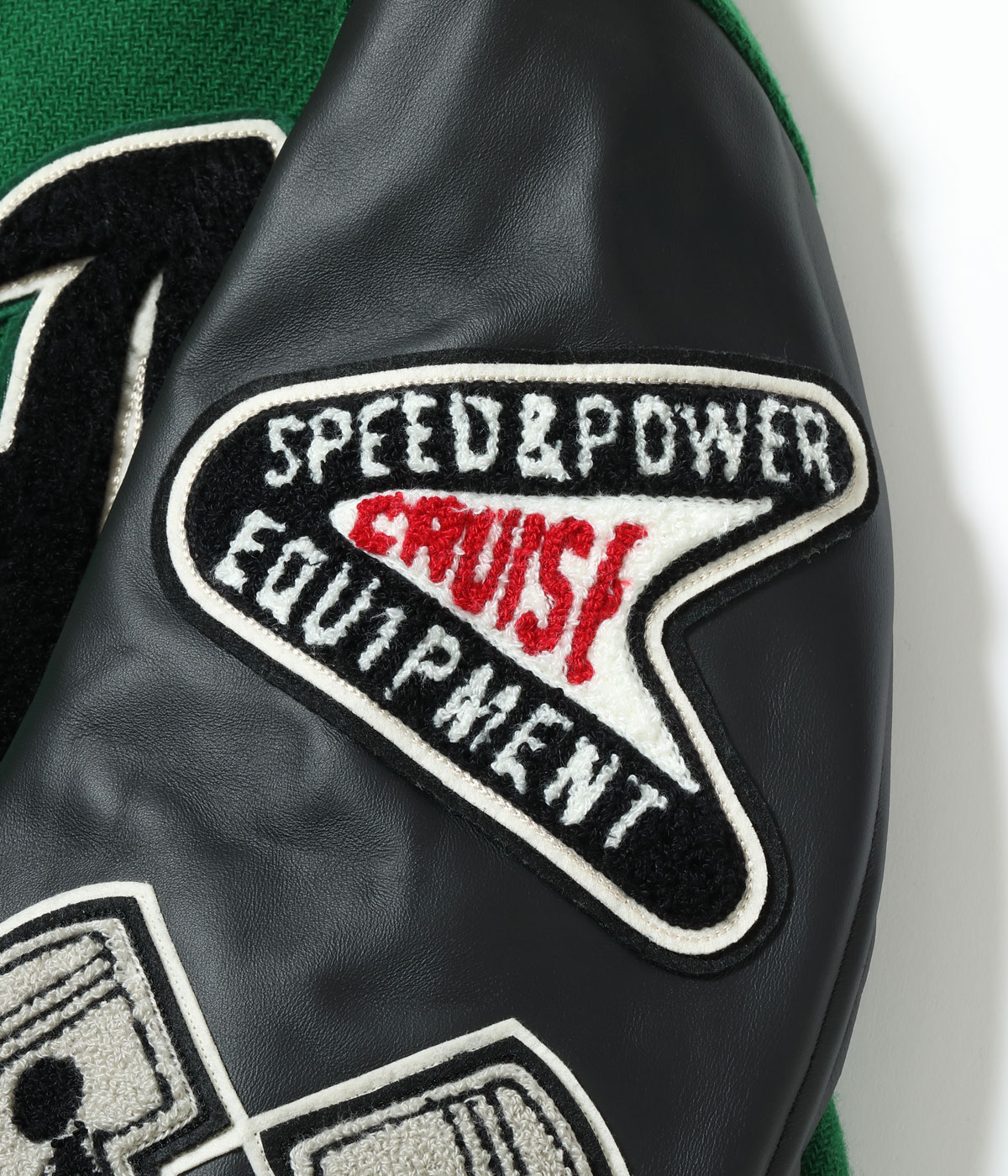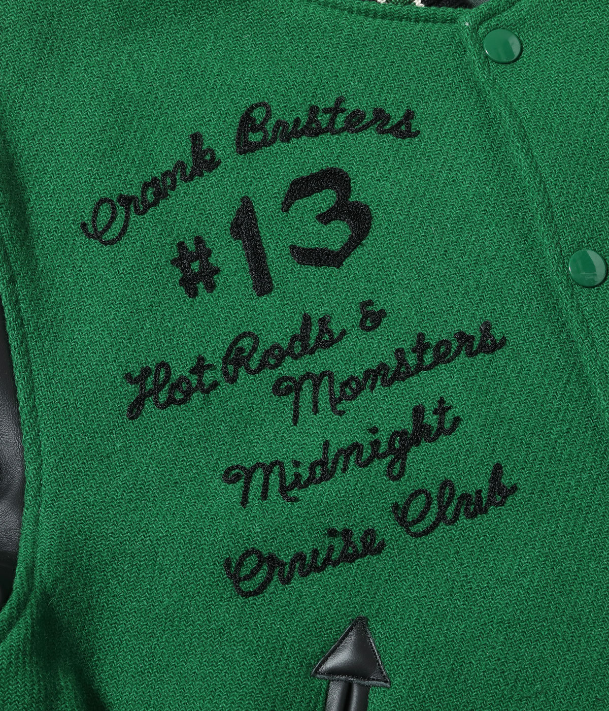 Lot No. WV15602-145 / 30oz. WOOL MELTON AWARD JACKET “CRANK BUSTERS” (GREEN)