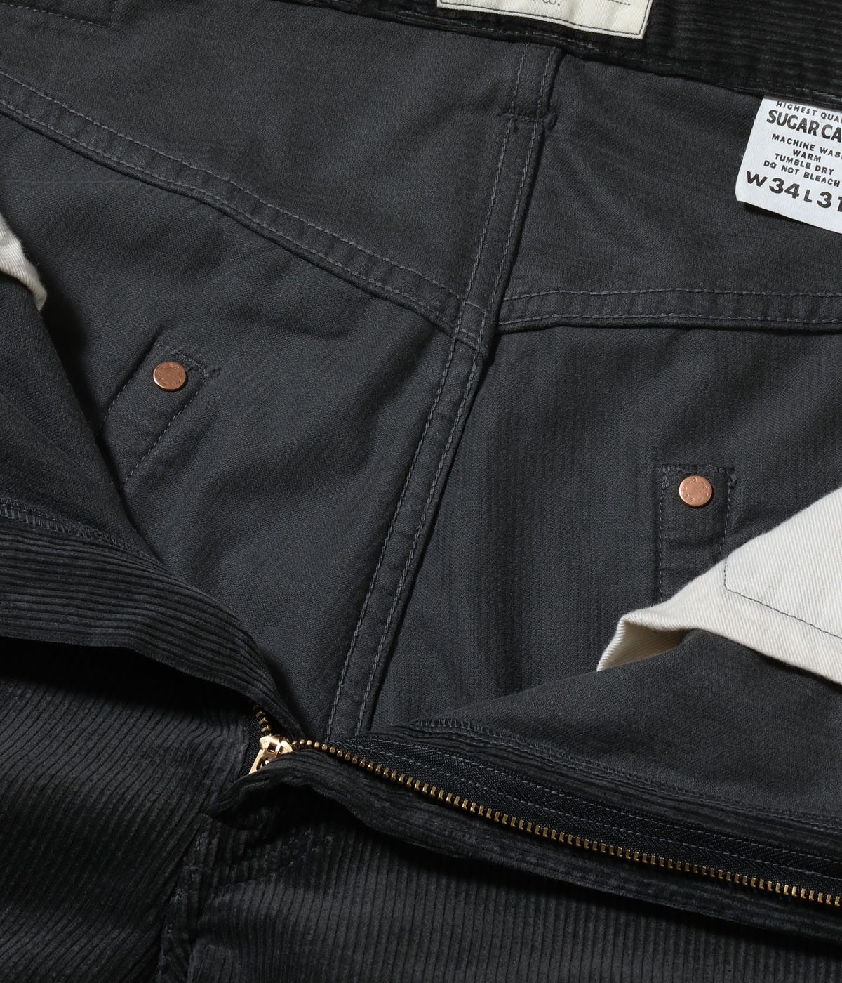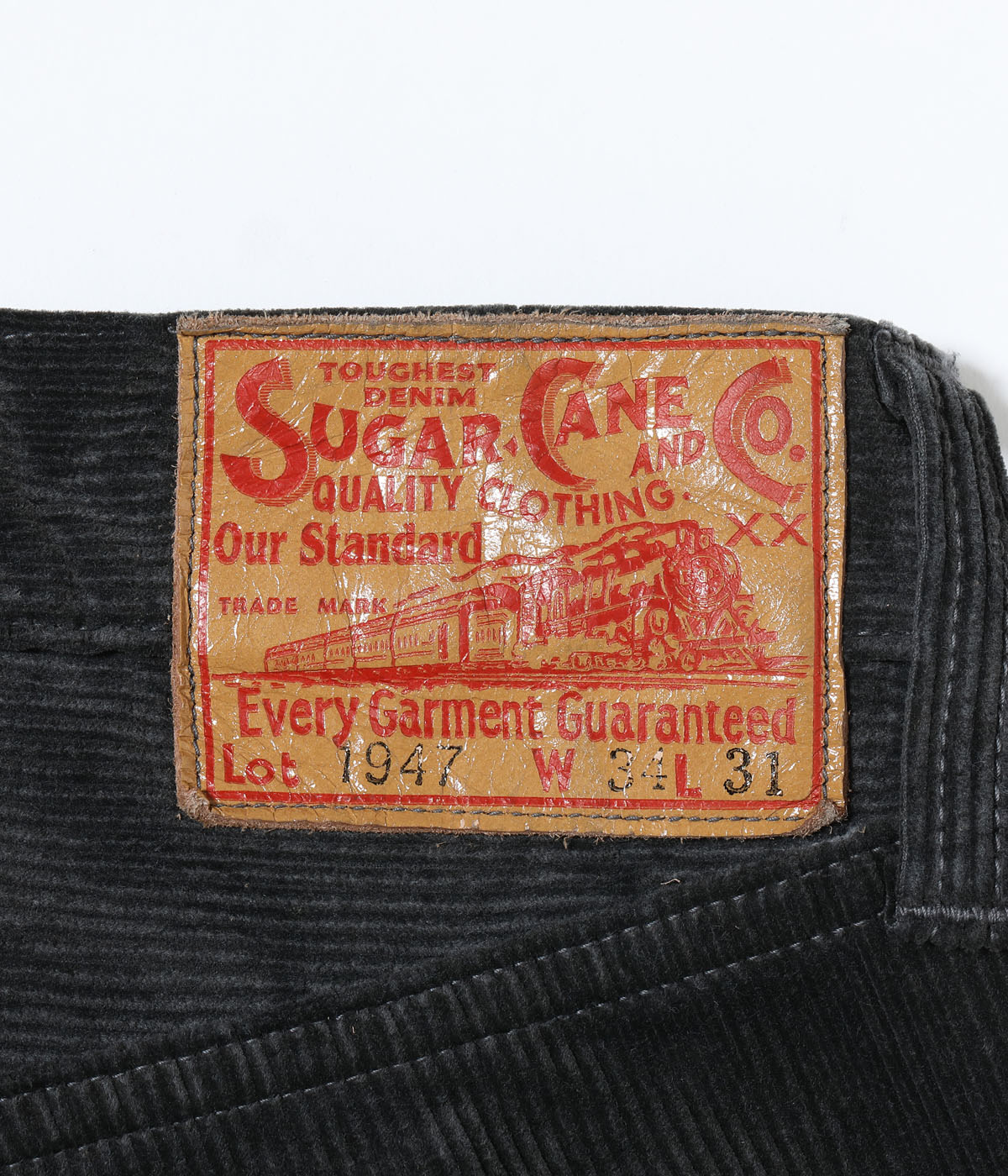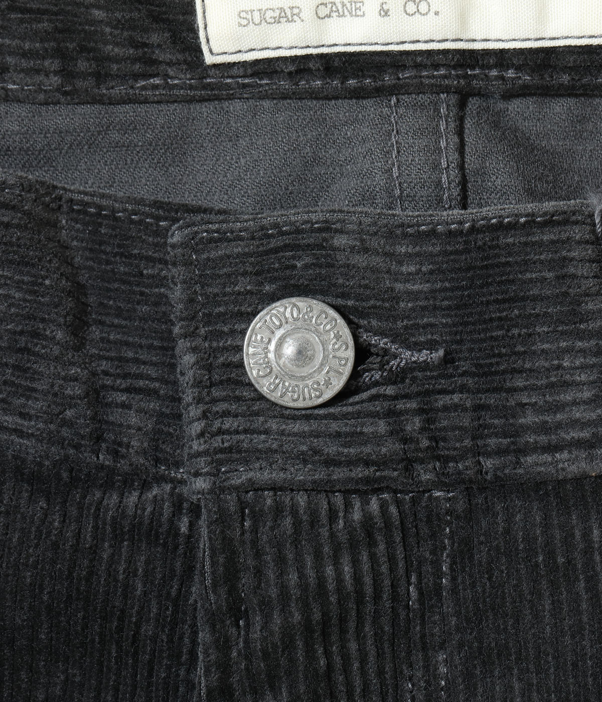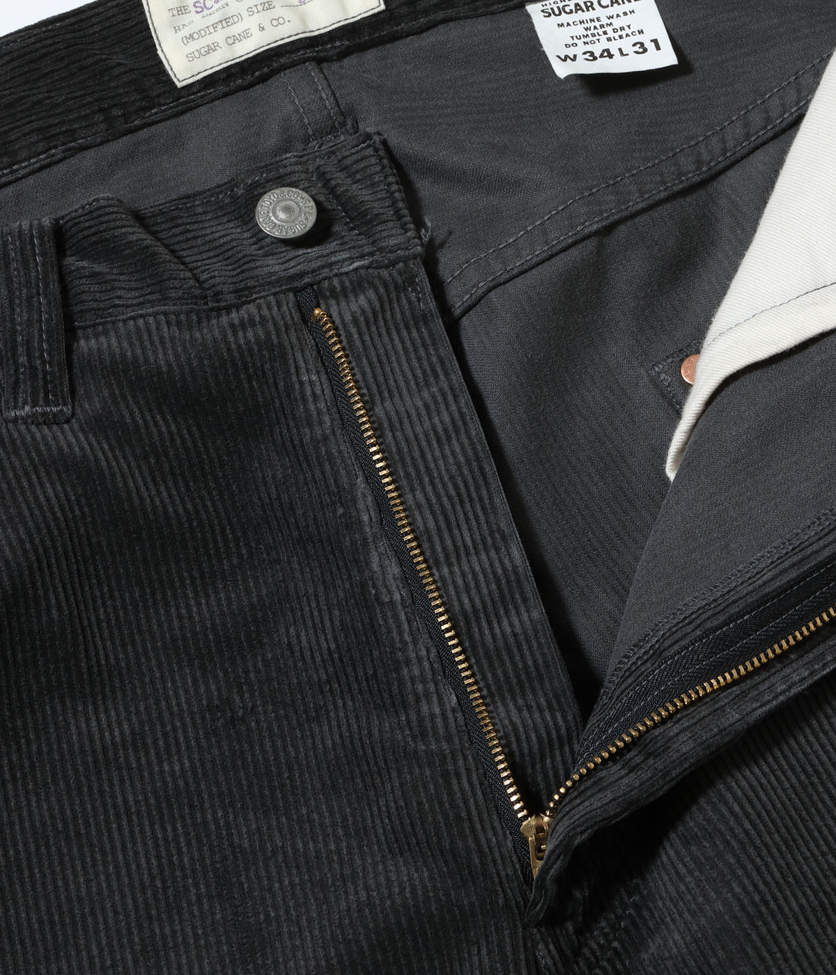 シュガーケーンを象徴するジーンズのひとつ1947モデル「SC41947」をコーデュロイ素材で製作。今回はジッパーフライかつピグメント加工を施しリリースしている。ボタンやリベット等のパーツ、隠しリベット等のディテール、ヴィンテージならではのシルエットはそのままに、レングスを31インチに統一。