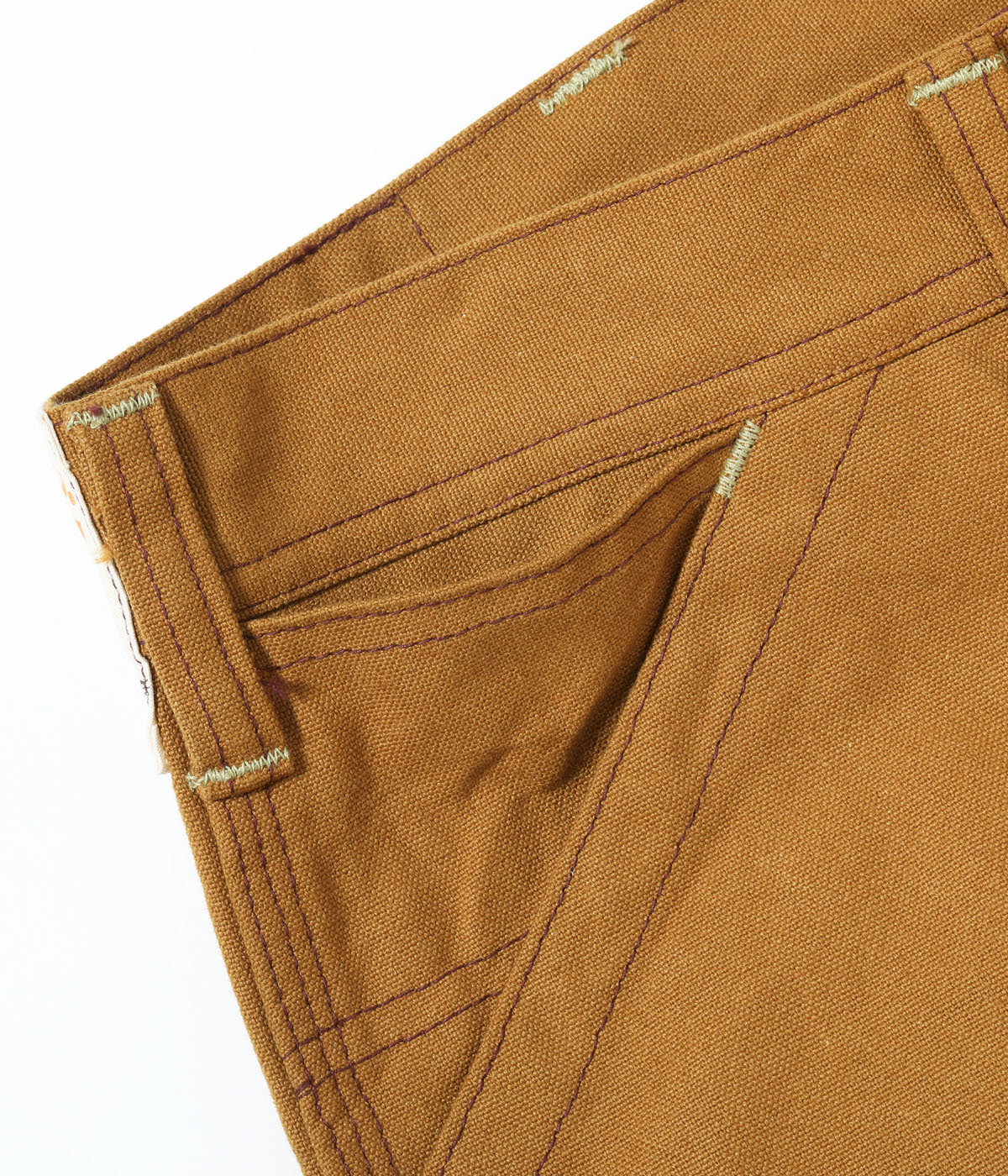 13オンスのブラウンダック生地を使用したワークパンツを今季からリニューアルして展開。頑強な3本針巻き縫い仕様で、太めのシルエットが特徴的。ワークウェアらしいハンマーループ、ルール&プライヤーポケットなども搭載。各部のディテールは「SC42495」と同様。