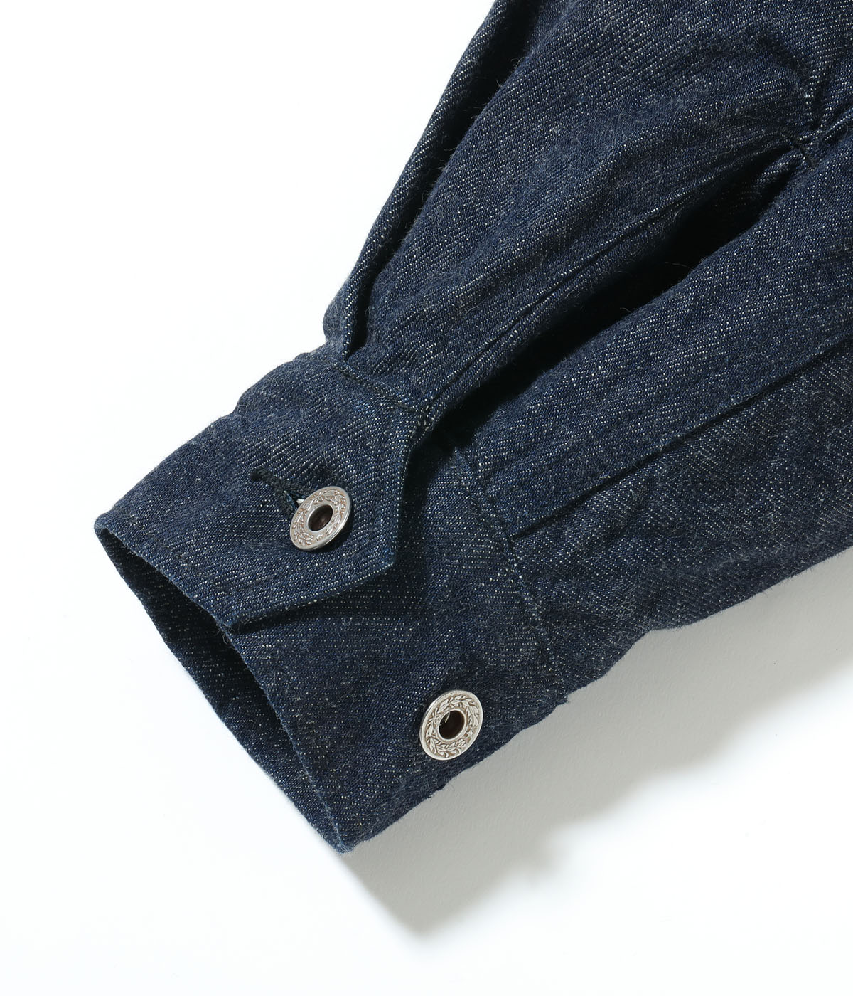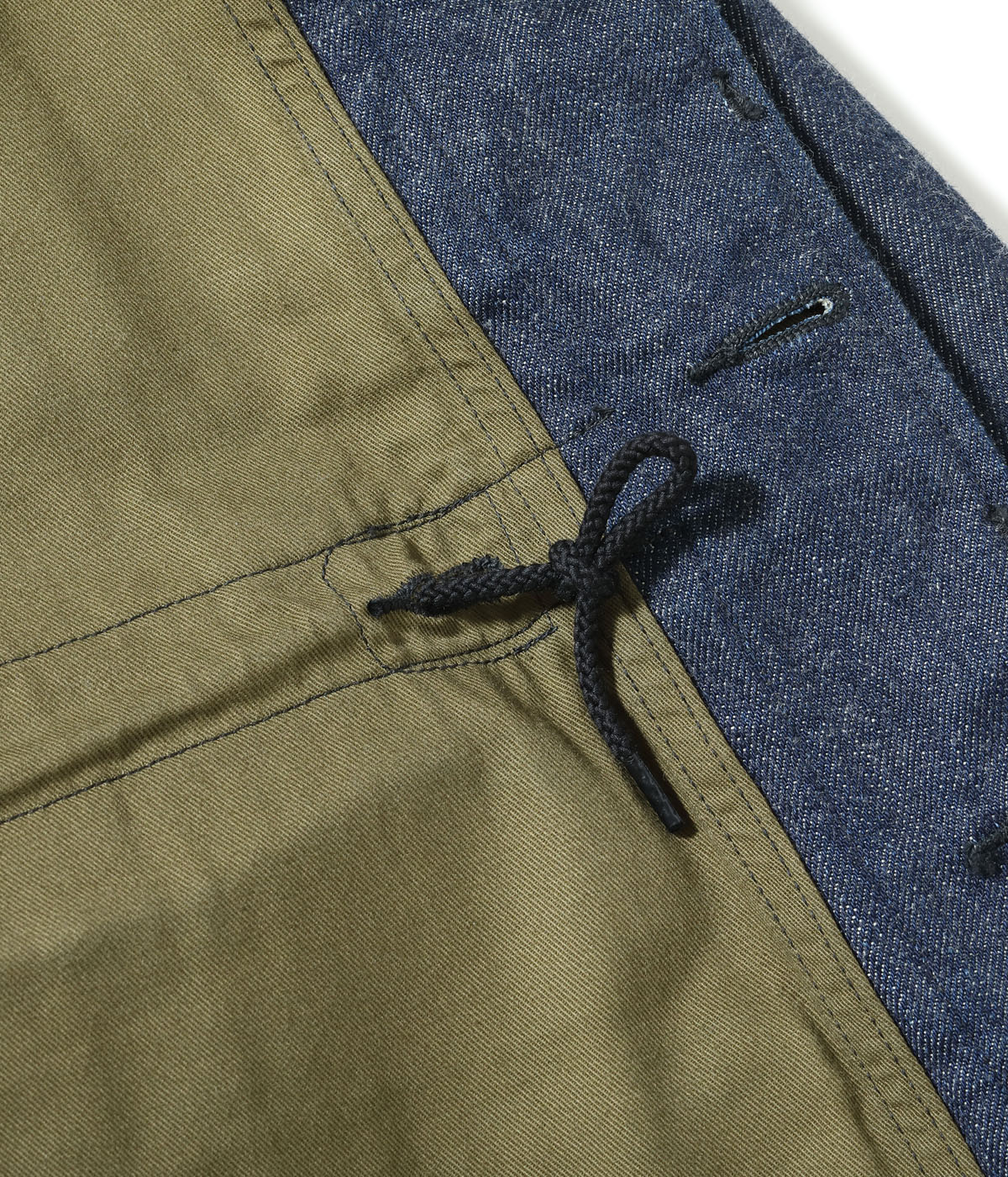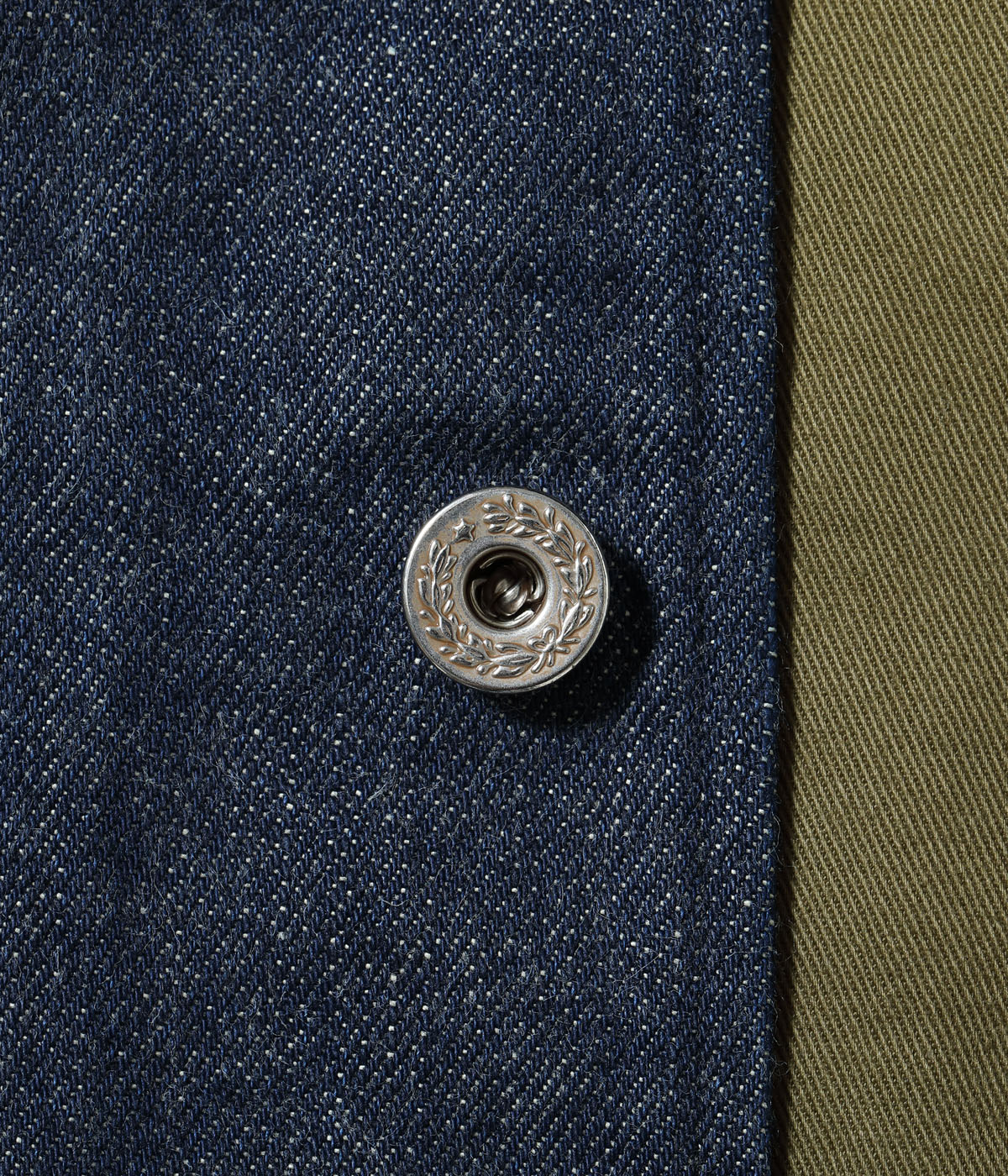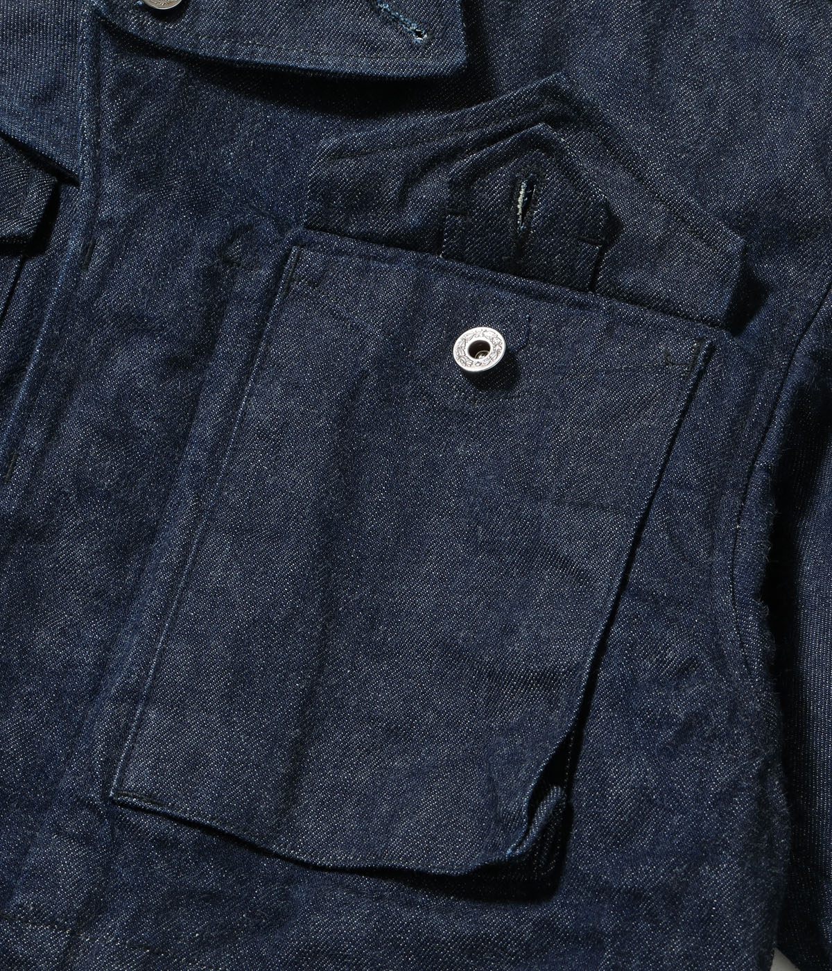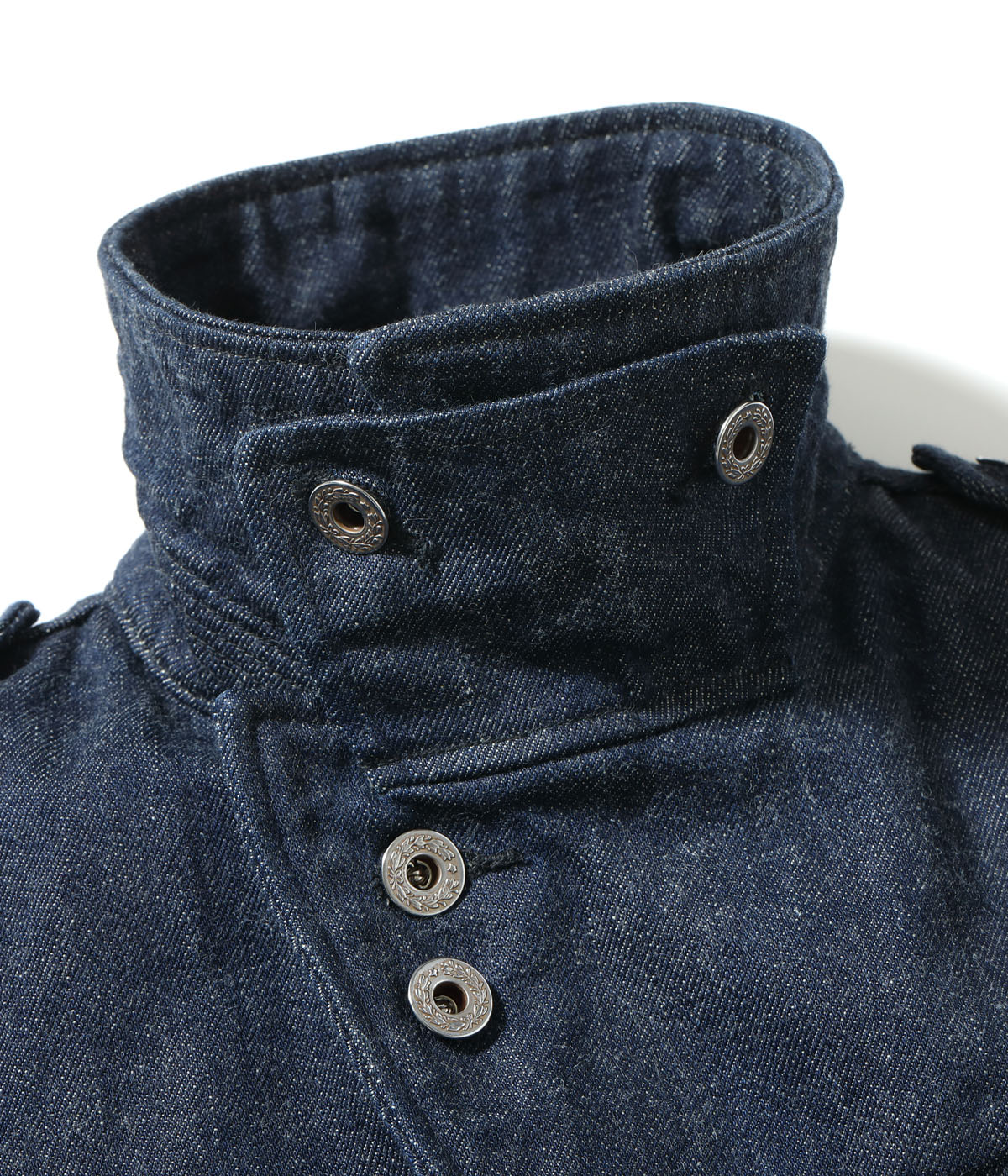 気温の変化や運動性を考慮し、全ての環境に対応すべくレイヤーシステム(重ね着)を採用して開発されたM-43は、その後採用されたフィールドジャケットの礎を築いた機能美に溢れるジャケットである。兵士達が快適に任務を遂行し、更には命を守るため開発されたジャケットは非常に完成度の高い戦闘服であり、実戦で実証されたジャケットは後に民間衣料品に波及した。古くから軍や民間衣料品のワークウェアとして使用された素材のデニム。タフで汚れの目立たないデニムは、最初はごわごわとした無骨な素材だが、擦れや摩擦を繰り返すことでデニムの表情に磨きが掛かる。この変化して行く過程と表情こそが我々を魅了して止まないデニムの魅力である。