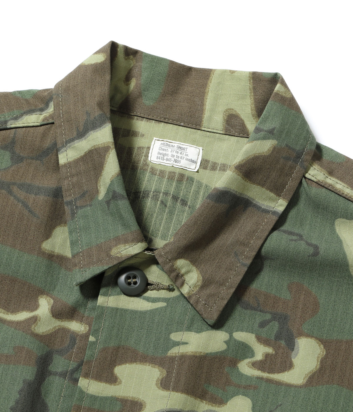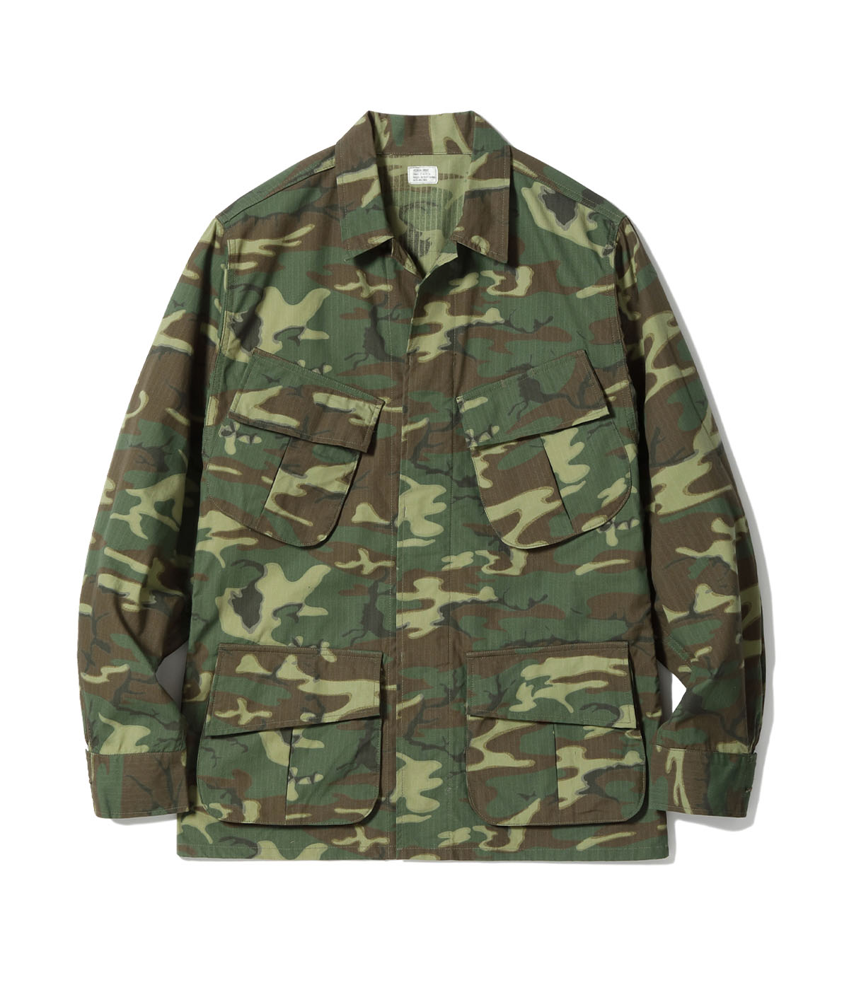通称『ジャングルファティーグ』の正式名称は『トロピカルコンバットユニフォーム』で、ベトナム戦時に採用、支給された熱帯地用野戦服である。素材には熱帯における気候を考慮して、軽量で乾きやすいコットンポプリンを採用している。型は第二次大戦時のパラシュートコートを改良したもので、一般的には、初期、中期、後期型の3タイプに大別されており、初期型(ファーストモデル)の特徴はポケットフラップから露出したボタンが最大の特徴となっている。現地ベトナムではジャングルでの戦いが大半で、露出したボタンが枝や装備品に引っ掛かってしまうことから、セカンドモデルではフラップの外に露出しない隠しボタン仕様に改良された。さらにサードモデルではエポレット、ウエストの調節タブ、前立てフラップが省略された。また、後期型の素材はコットンポプリンからリップストップ生地へと変更されている。