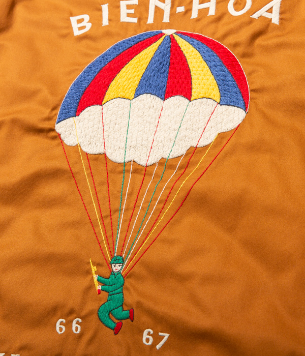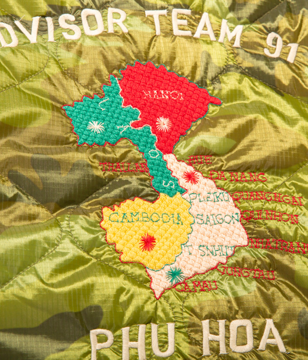 ベトナムの都市ビエンホアに駐留していた兵士が1960年代中期にオーダーしたヴィンテージでも非常に珍しいリバーシブルタイプ。コットンツイル生地にはパラシュート部隊、ナイロンリップストップ生地にはアドバイザーチーム(軍事顧問団)の文字とマップの刺繍が施されている。