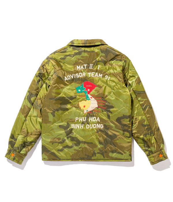 ベトナムの都市ビエンホアに駐留していた兵士が1960年代中期にオーダーしたヴィンテージでも非常に珍しいリバーシブルタイプ。コットンツイル生地にはパラシュート部隊、ナイロンリップストップ生地にはアドバイザーチーム(軍事顧問団)の文字とマップの刺繍が施されている。
