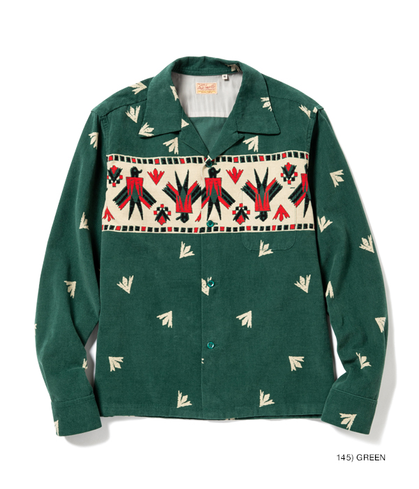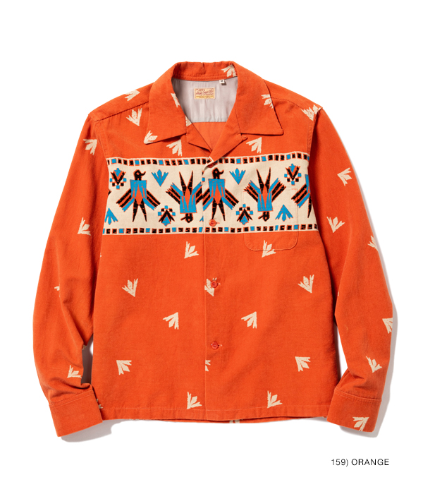 アメリカンヴィンテージクロージングの専門書籍に必ずと言っていいほど掲載されており、不動の人気を誇る通称「サンダーバード」柄。ヴィンテージではレーヨン生地でジップアップタイプのジャケットが主流だが、コーデュロイ生地にプリントを施し、シャツとしてリリース。今回は3色すべてスタイルアイズのオリジナルカラー。