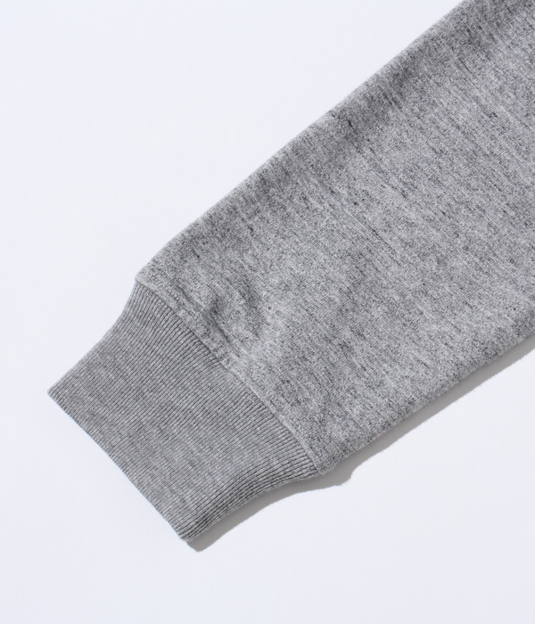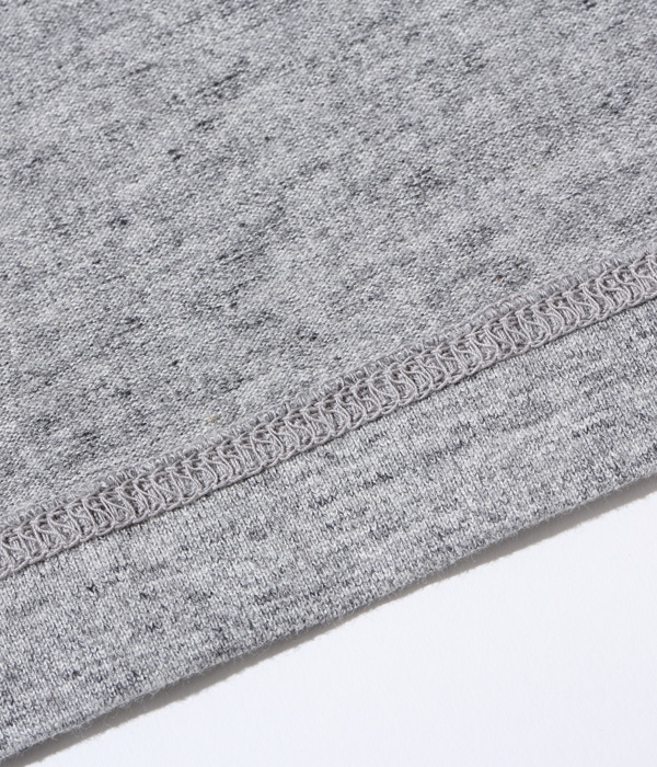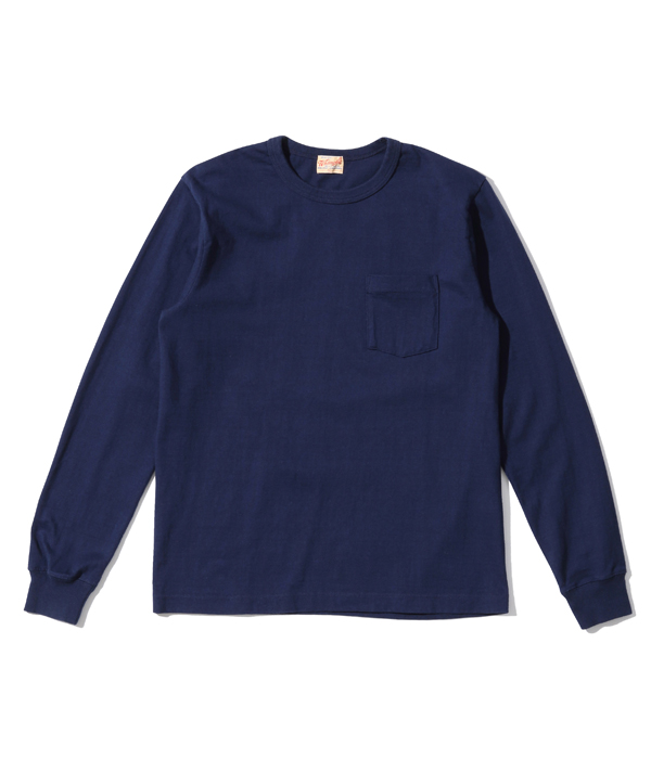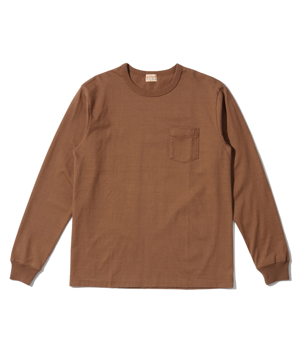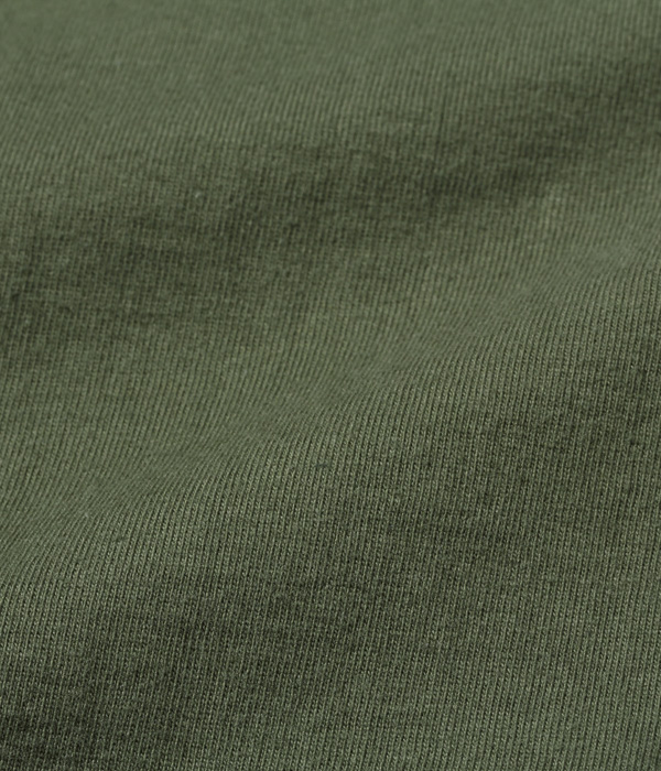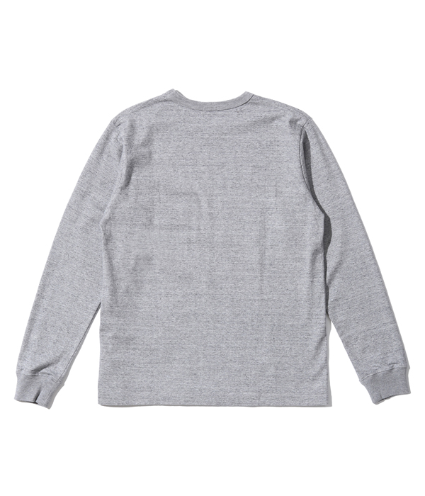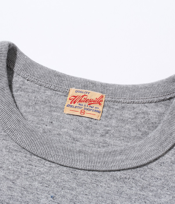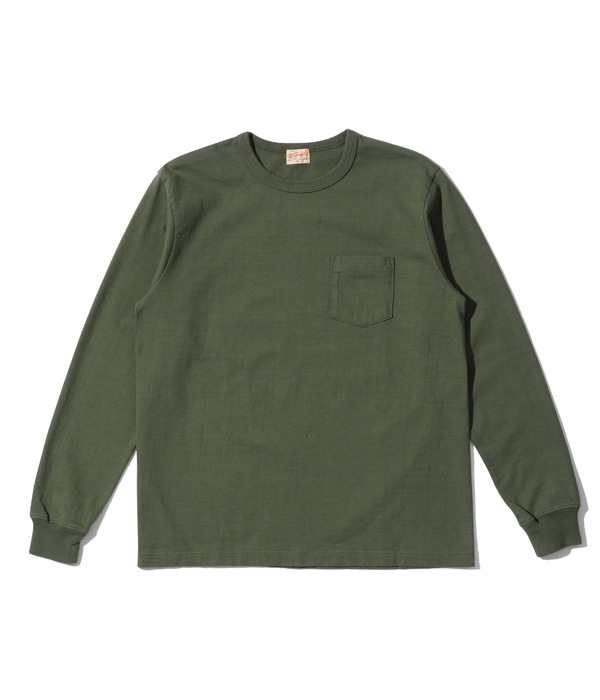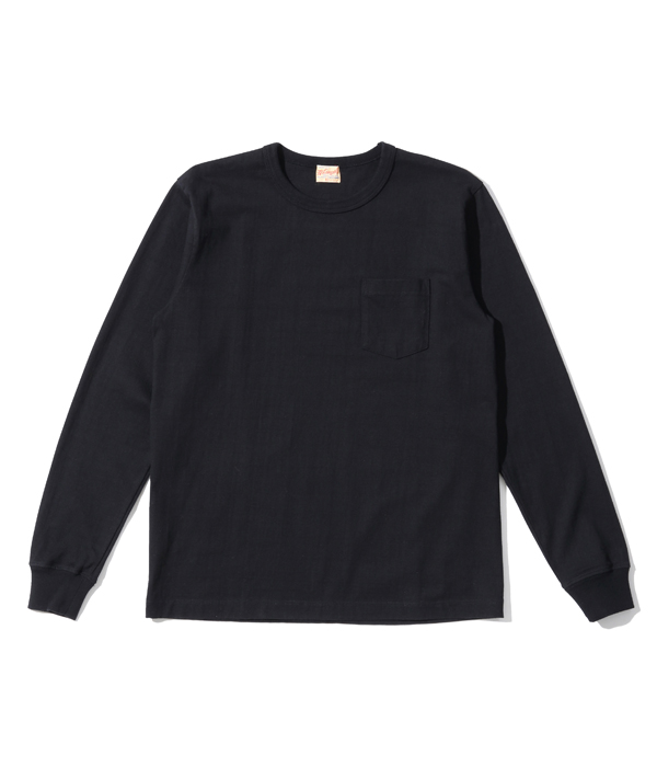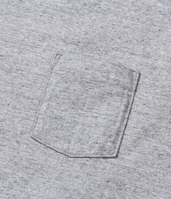 14番手の糸で編み立てたヘビー天竺生地のポケット付きロングスリーブTシャツ。身頃は丸胴仕様で、襟には14番手の糸で編み立てたリブを使用している。首元はリブでボディの生地を挟み込むバインダーネック仕様。肩、裾、袖リブ付けは2本針の縫製。長年愛用できるホワイツビルの定番Tシャツとして、この長袖だけでなく半袖のモデルも展開している。