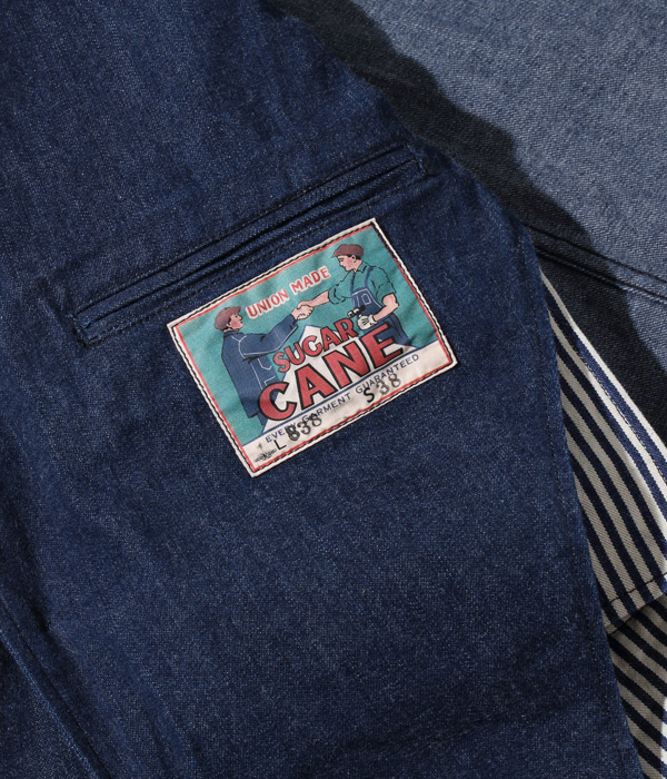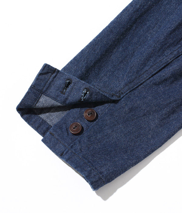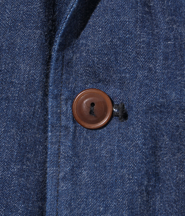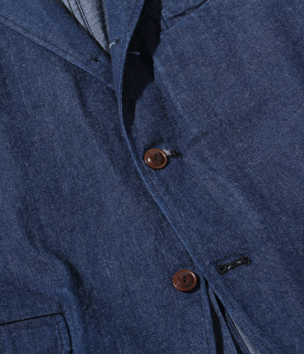9.5オンス、2×1ツイルの WWII CROWN-HEADLIGHT DENIM(大戦モデルのワークウェアのデニム生地を再現したもの)を使用したジャケット。同じ生地のトラウザー(Lot No. SC42201)とセットアップで着用可能。