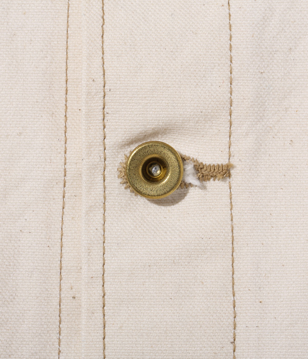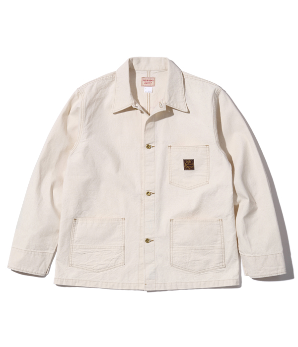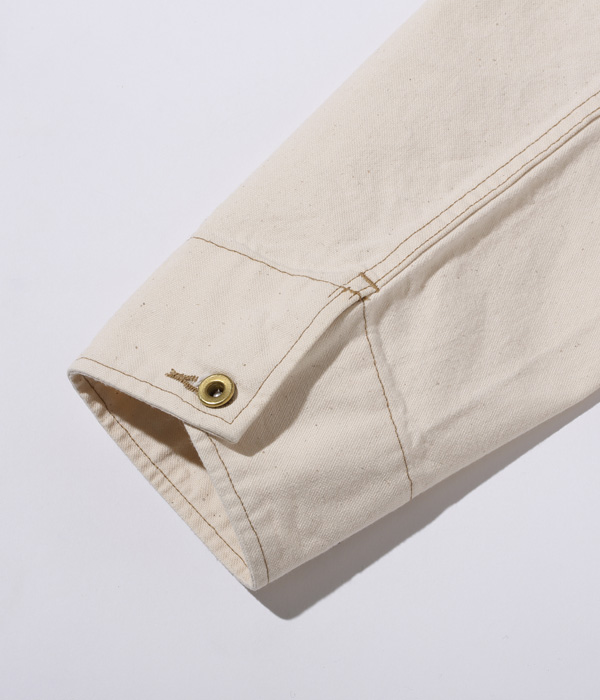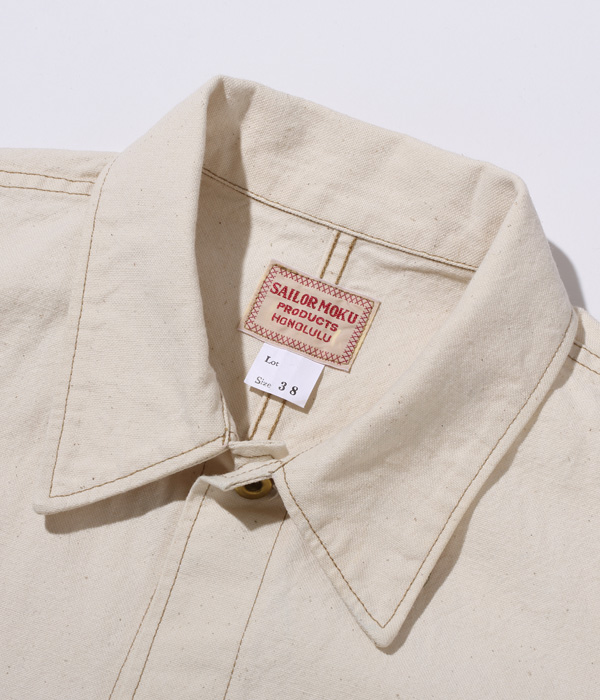 「パイナップルツイード」と呼ばれるコットン素材の厚手の生地で仕立てられたワークジャケット。その名はパイナップルの実を収穫する際、ハワイの農園で使われていた袋の素材に由来する。当時のハワイでは入手しやすく、頑丈な生地であったことから、このようにワークウエアの素材として使われていた。