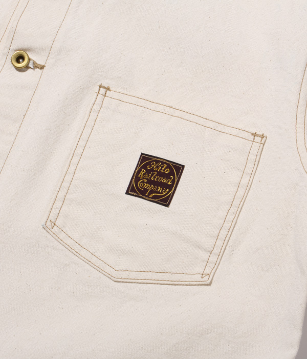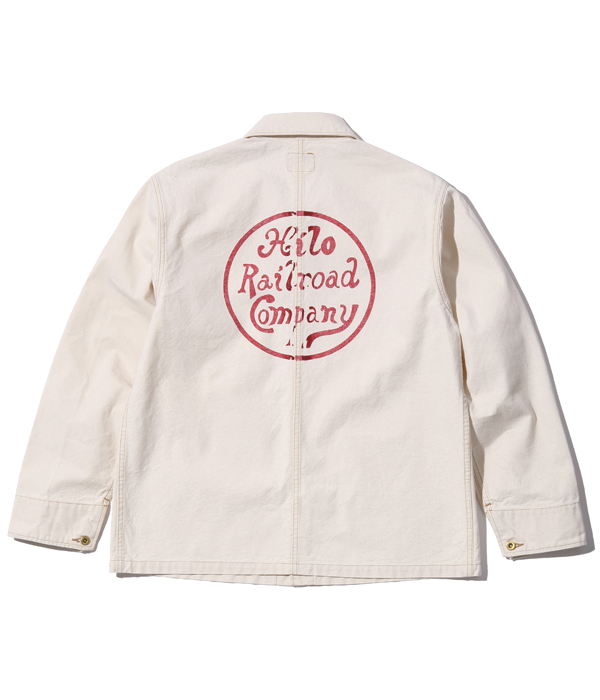 サンサーフがハワイのワークウエアの歴史を紐解くなかで「ヒロ・レイルロード・カンパニー」という過去に実在した鉄道会社に着目し、当時の資料をもとにその独特な仕様を再現。背中にはヒロ鉄道のロゴがプリントされている。農園で働くプランテーションワーカーたちのワークジャケットとは異なり、アメリカ本土のワークウエアに近いディテールも特徴。