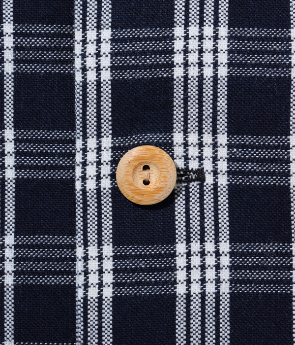 ムサシヤのパラカの特徴は生地にあり、濃紺に染めた糸で織り上げた9オンスのパラカチェック生地を使用。通常、パラカは淡いブルーの色合いが多く、このような濃紺の生地を使用したものは希少価値が高い。